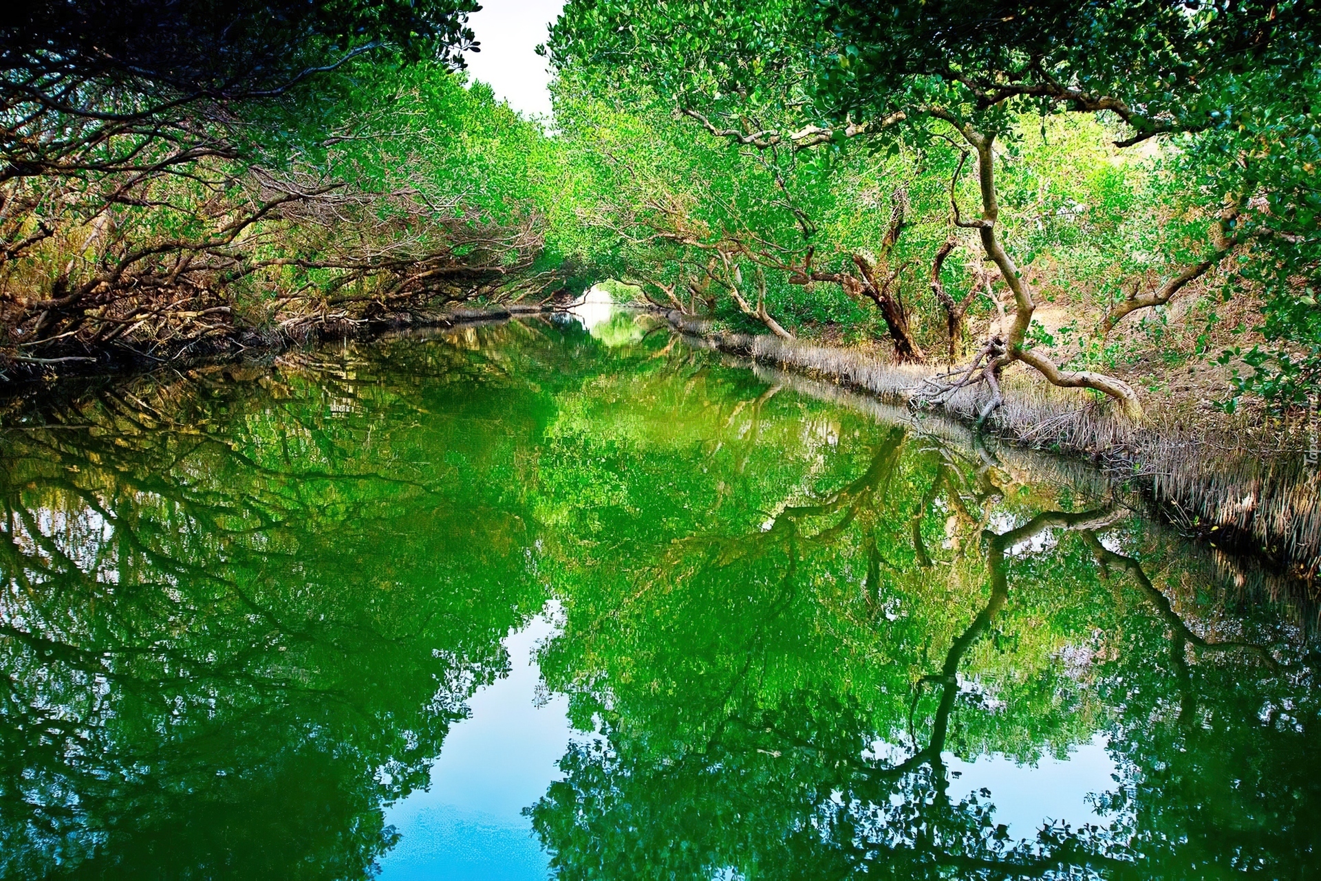 Edytor tapety: Rzeka, Trawy, Drzewa