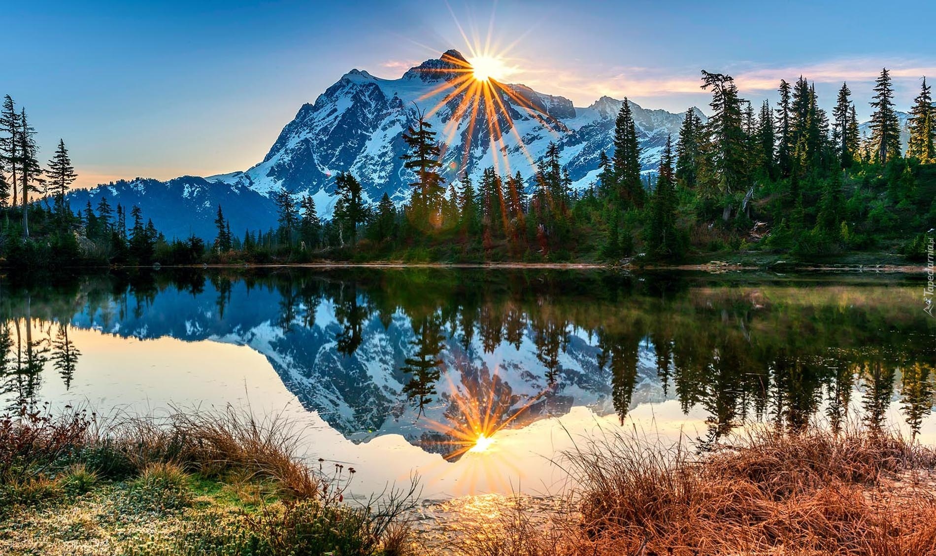 Edytor tapety: Góry, Niebo, Las, Zachód, Słońca