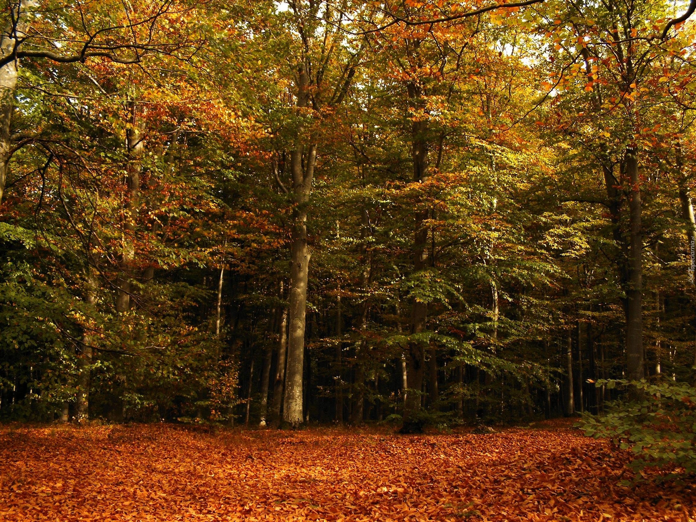 Edytor tapety: Las, Jesienią, Drzewa, Liście