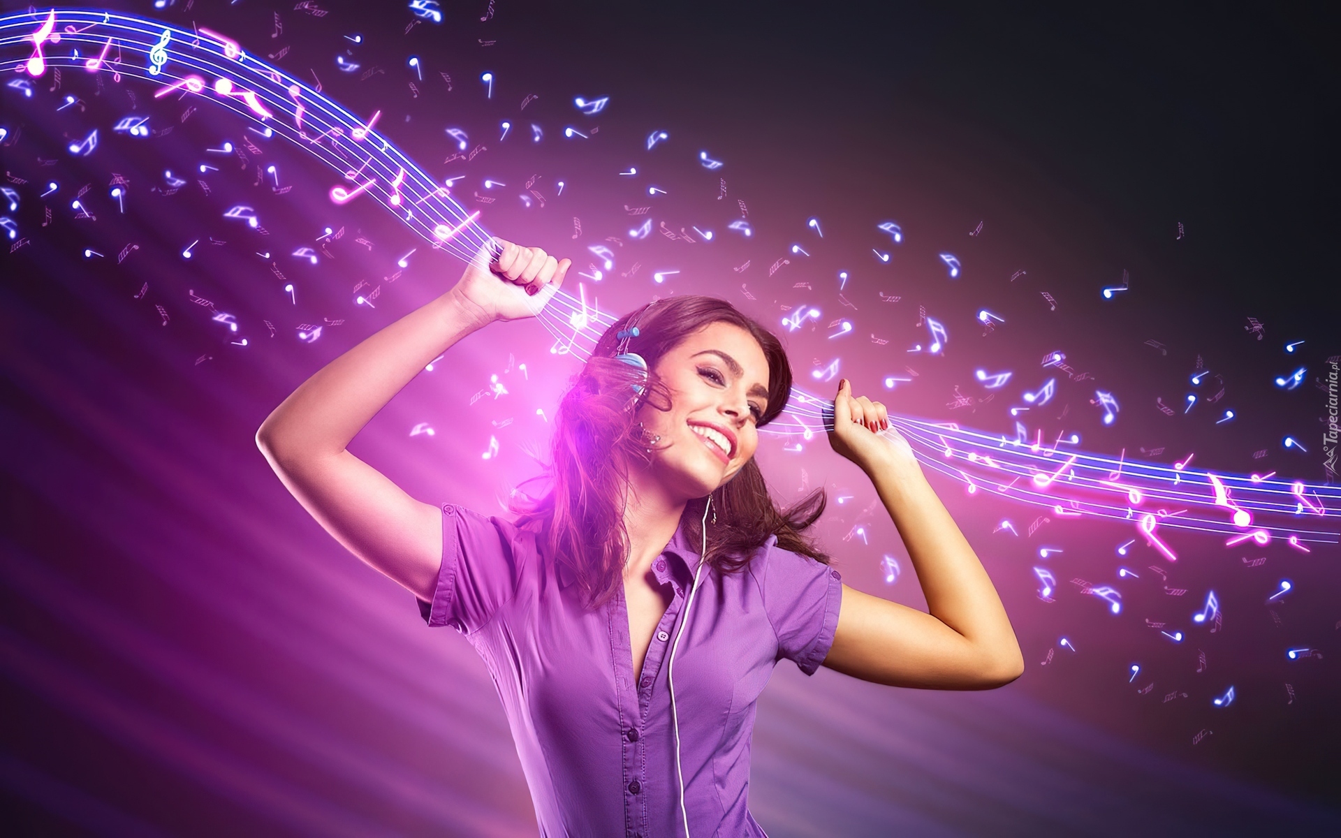 Edytor tapety: Brunetka, Dziewczyna, Muzyka, Nutki
