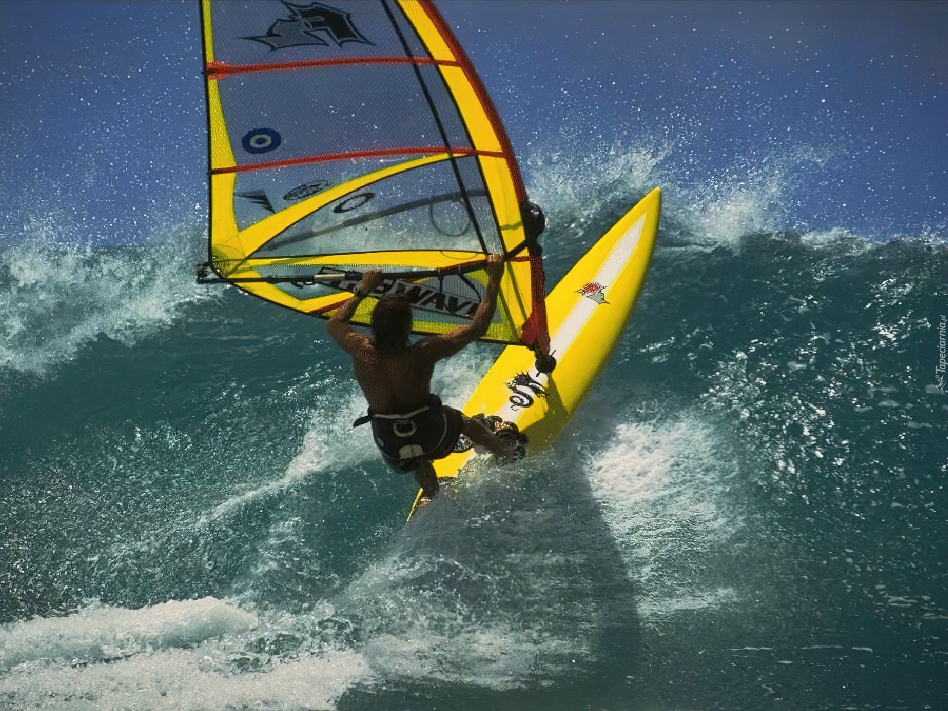 Edytor tapety: Windsurfing,żółta deska