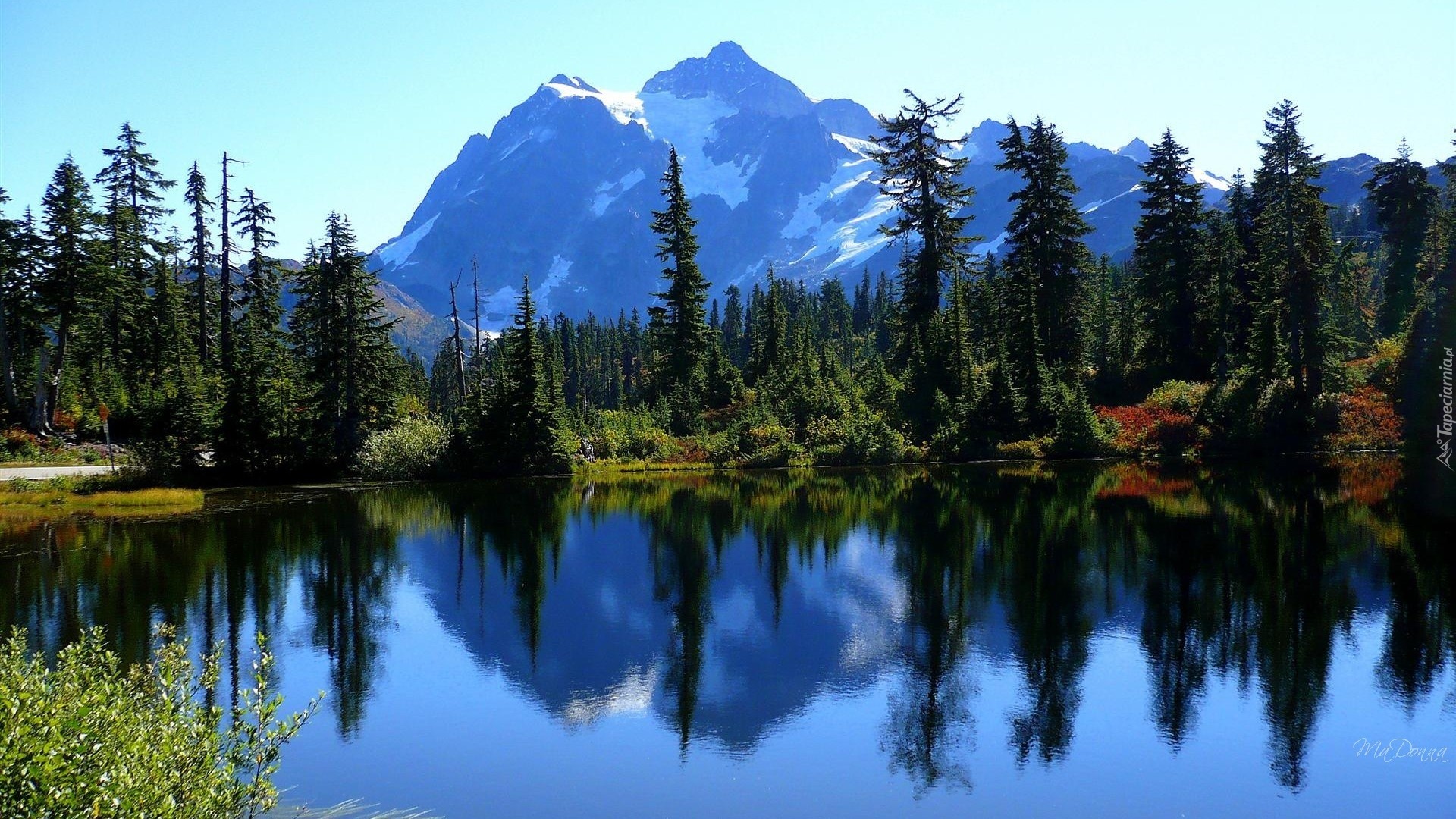 Edytor tapety: Góry, Las, Jezioro