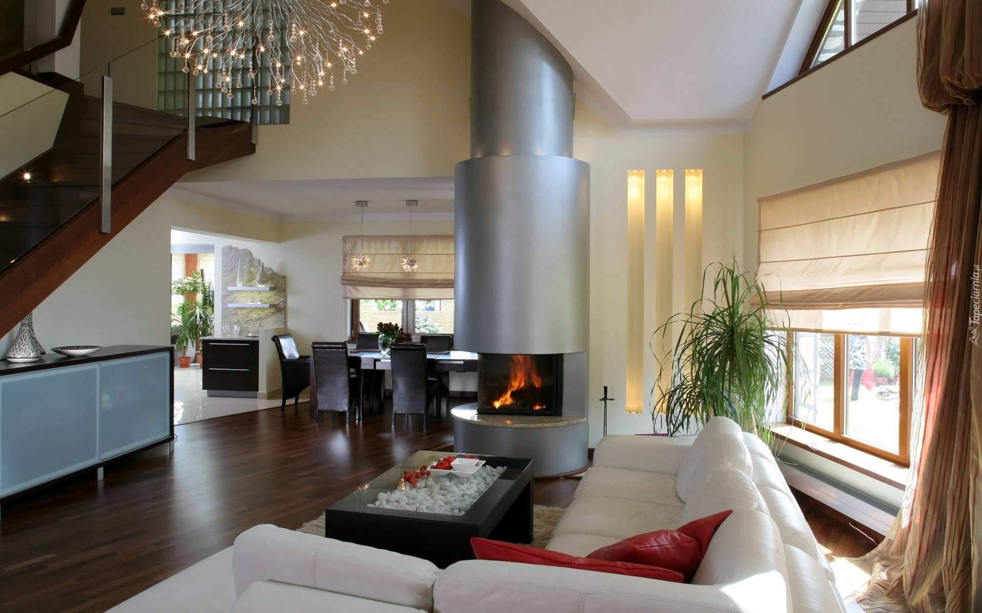 Edytor tapety: Salon, Kominek, Lampa, Schody