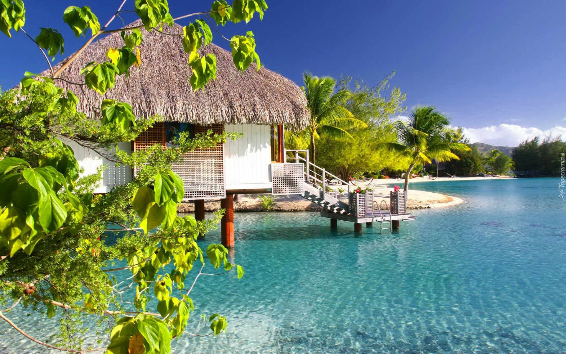 Edytor tapety: Dom, Na, Palach, Palmy, Góry, Morze, Tropiki