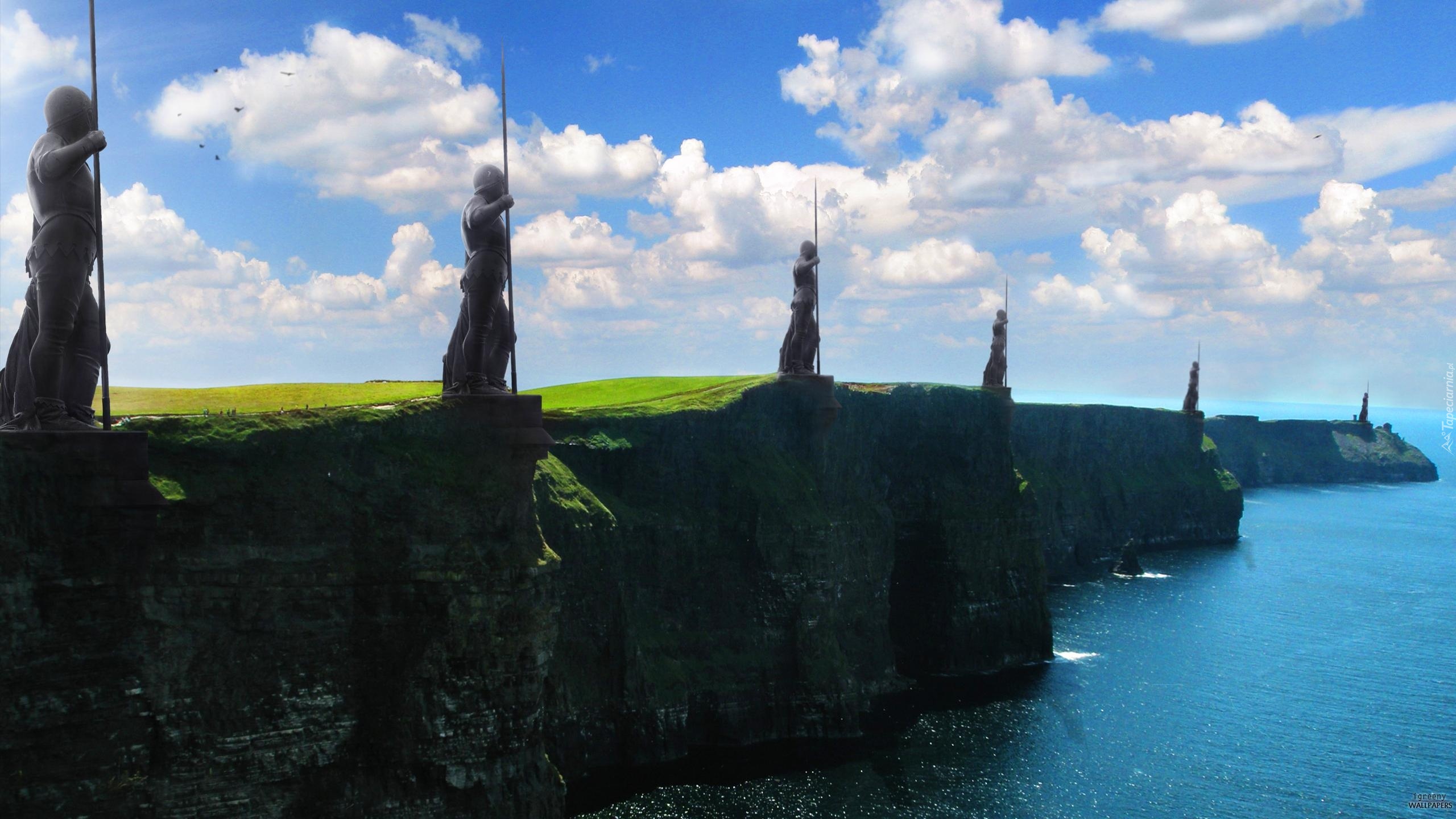 Edytor tapety: Wybrzeże, Klify, Chmury, Figury, Wojowników