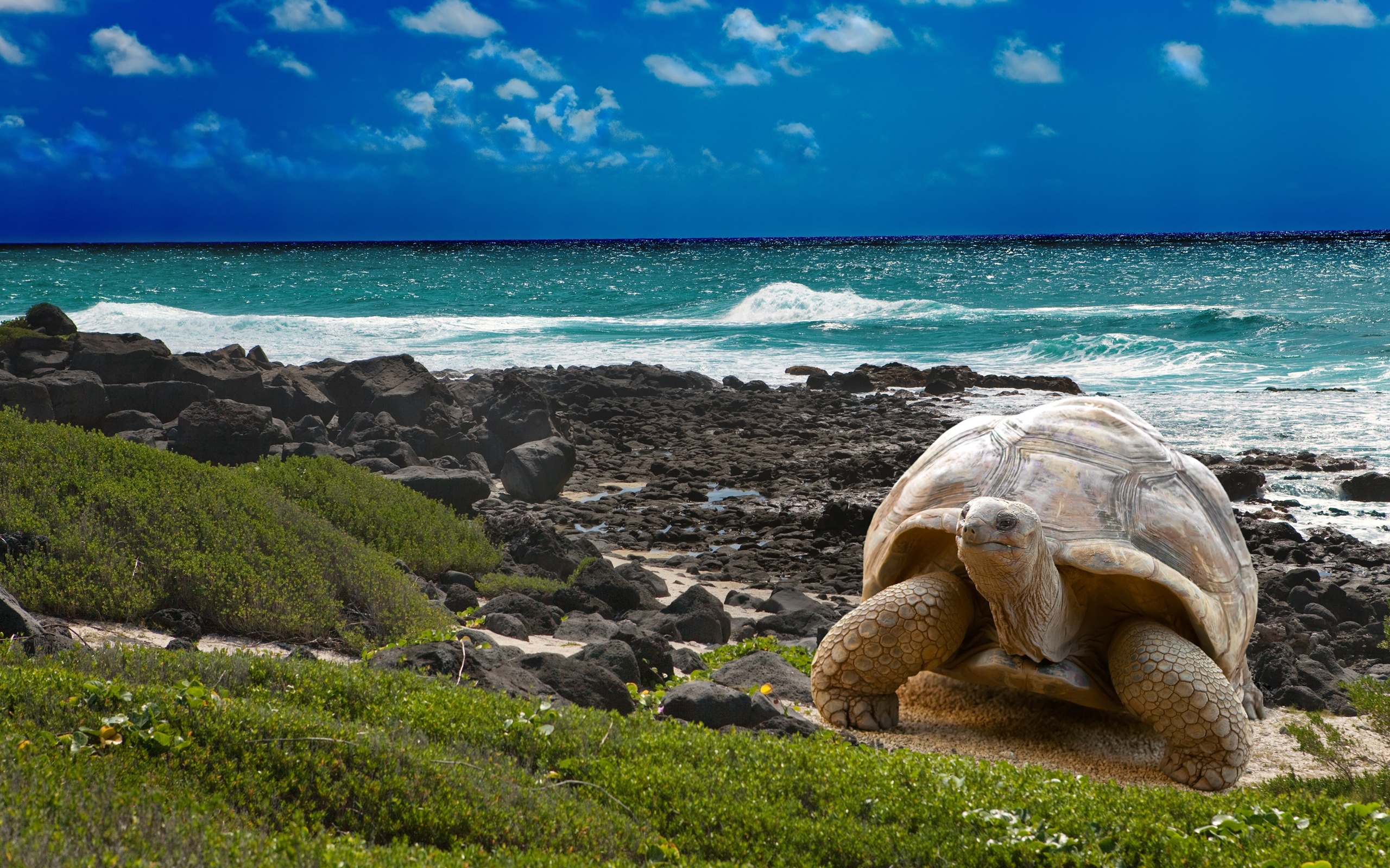 Edytor tapety: Żółw, Trawa, Morze, Kamienie