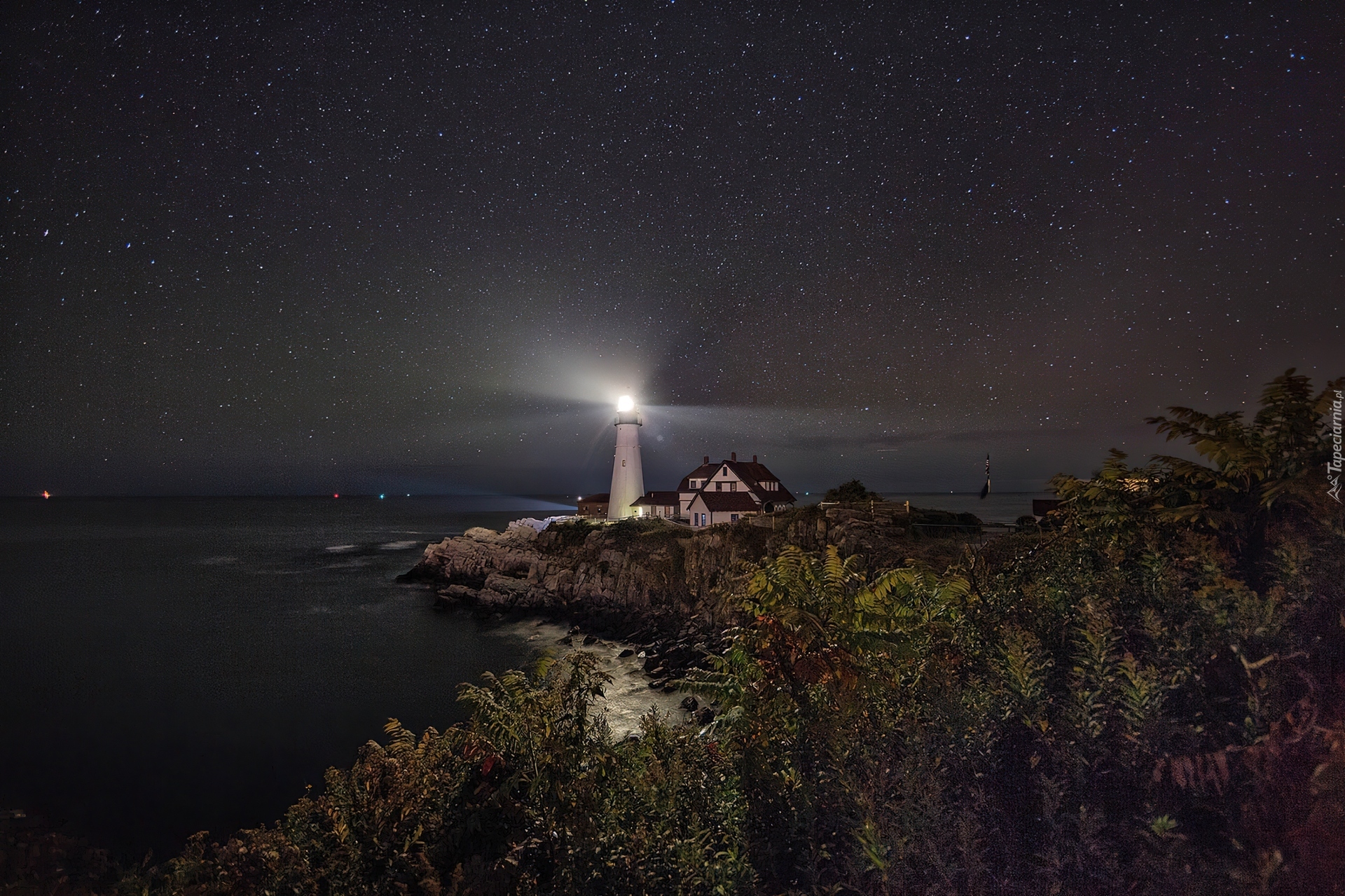 Edytor tapety: Latarnia, Morska, Światło, Morze, Noc, Gwiazdy