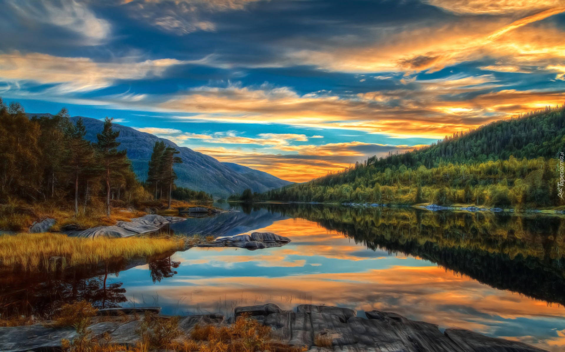Edytor tapety: Jezioro, Góry, Drzewa, Odbicie