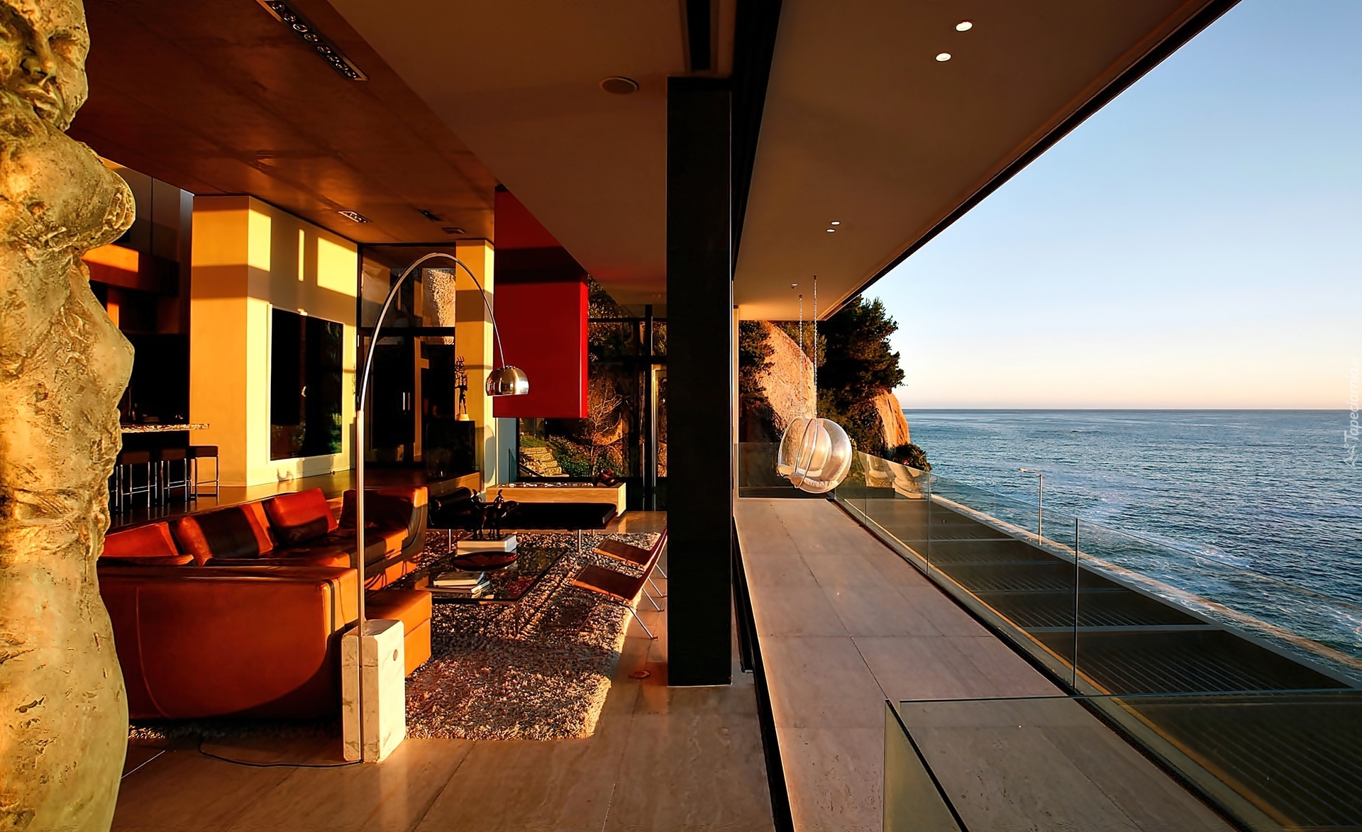 Edytor tapety: Zachód, Słońca, Morze, Dom, Taras, Komplet, Wypoczynkowy