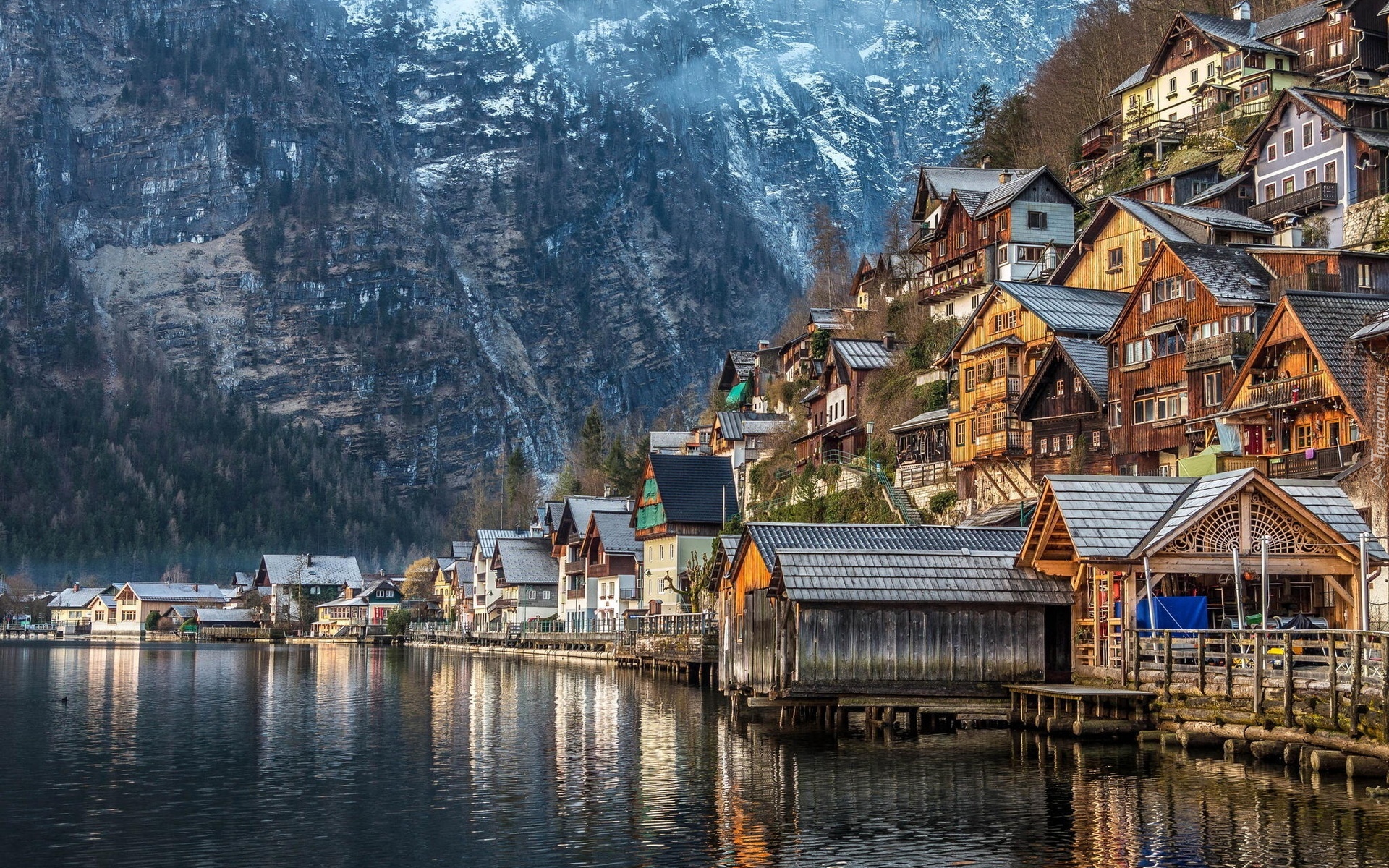 Edytor tapety: Jezioro, Góry, Miasteczko, Hallstatt, Austria