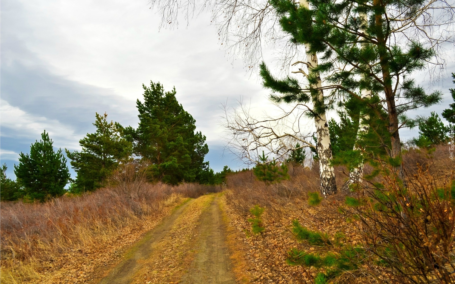 Edytor tapety: Droga, Góry, Lasy, Drzewa, Liście, Jesień