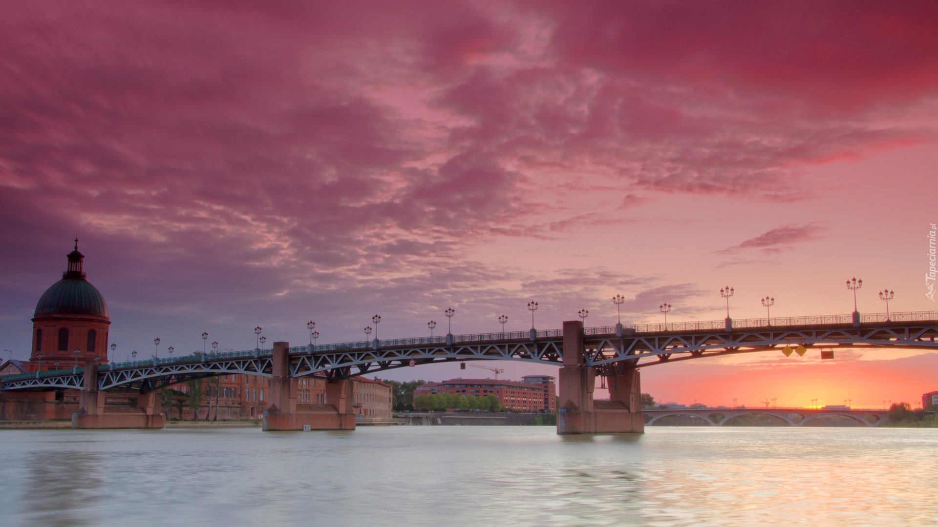 Edytor tapety: Most, Rzeka, Kościół, Wschód, Słońca