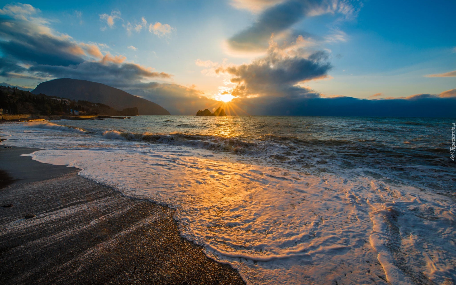 Edytor tapety: Plaża, Morze, Góry, Promienie, Słońca, Jałta, Krym, Ukraina