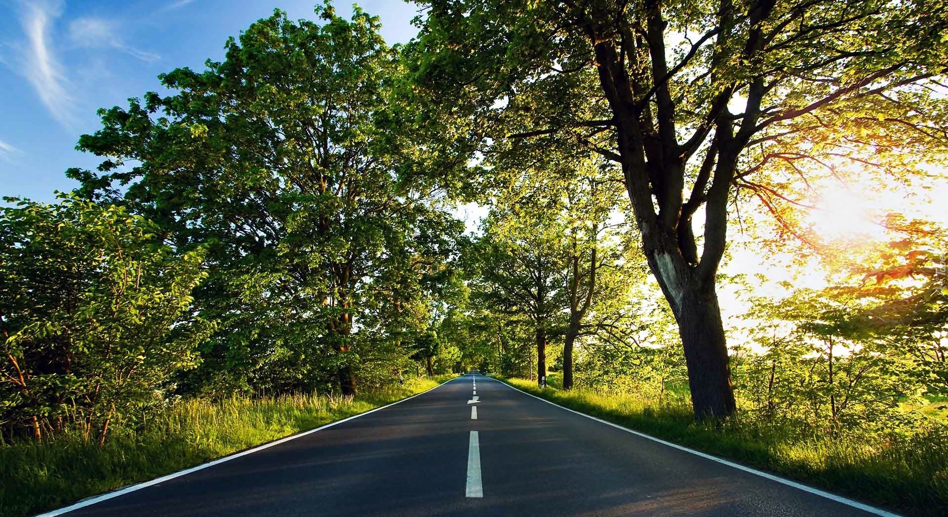 Edytor tapety: Droga, Drzewa, Przebijające, Światło