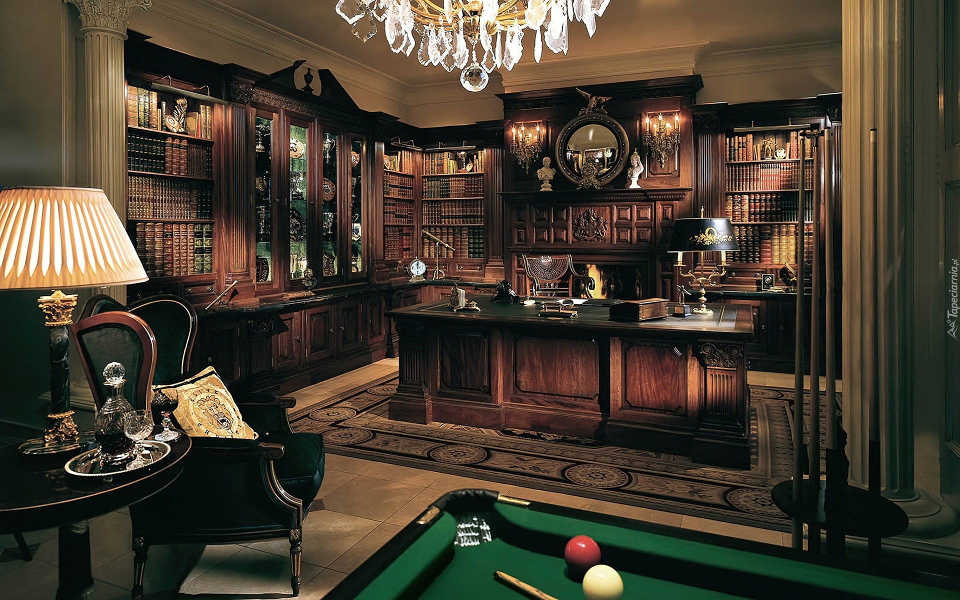 Edytor tapety: Gabinet, Regały, Książki, Biurko, Bilard