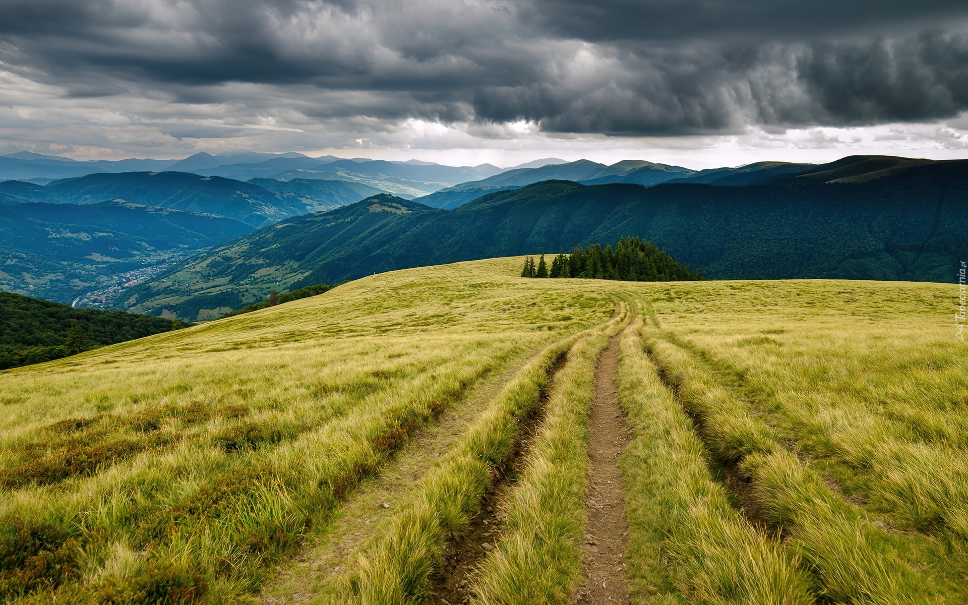 Edytor tapety: Góry, Lasy, Łąki, Droga, Chmury, Karpaty