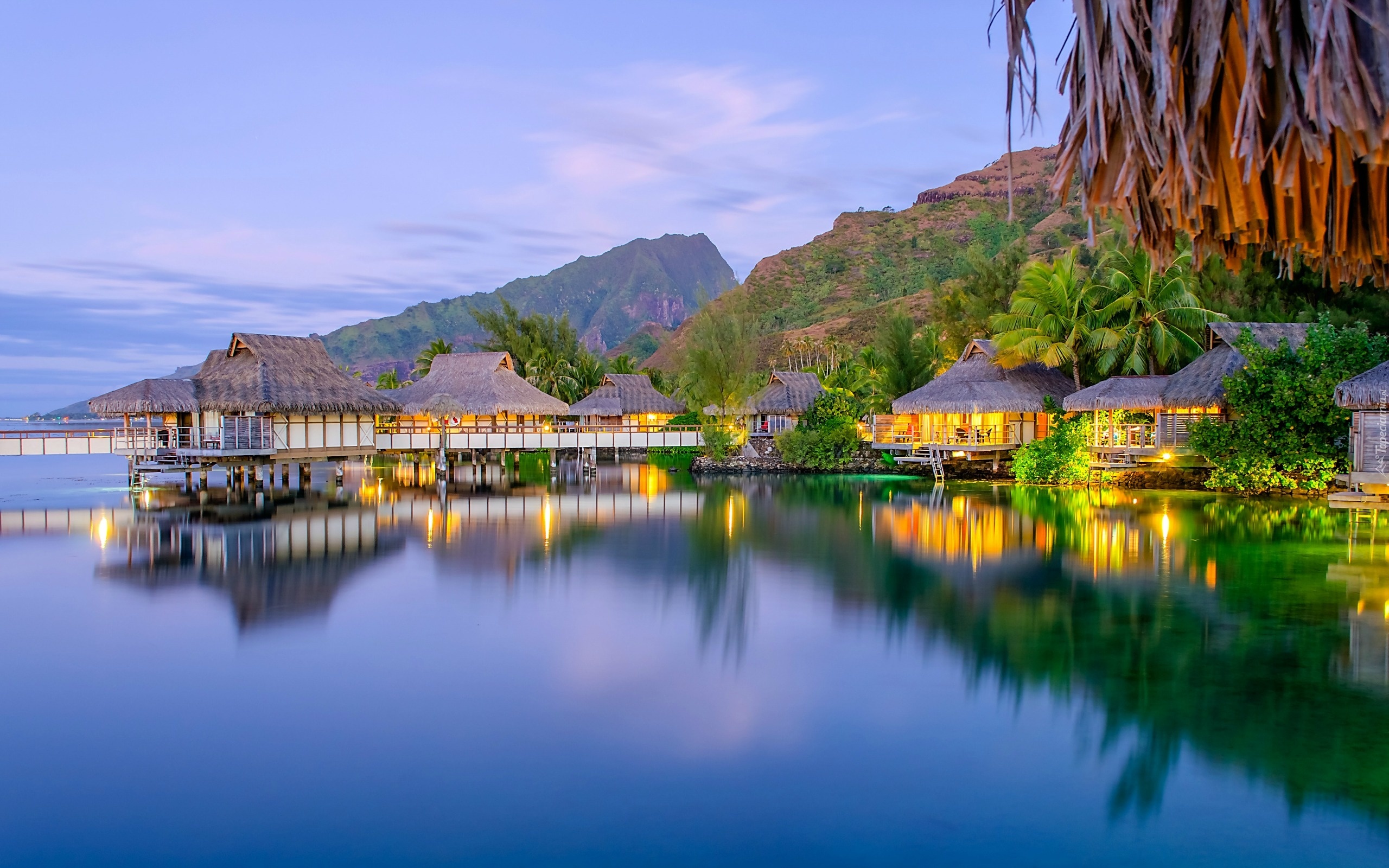 Edytor tapety: Domy, Palmy, Góry, Morze, Zmrok, Tropiki