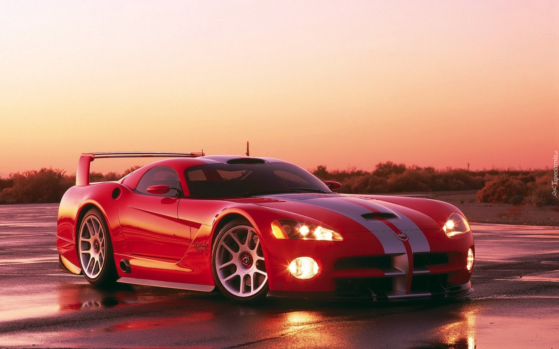 Edytor tapety: Dodge, Viper, GTS-R Droga, Drzewa, Wschód, Słońca