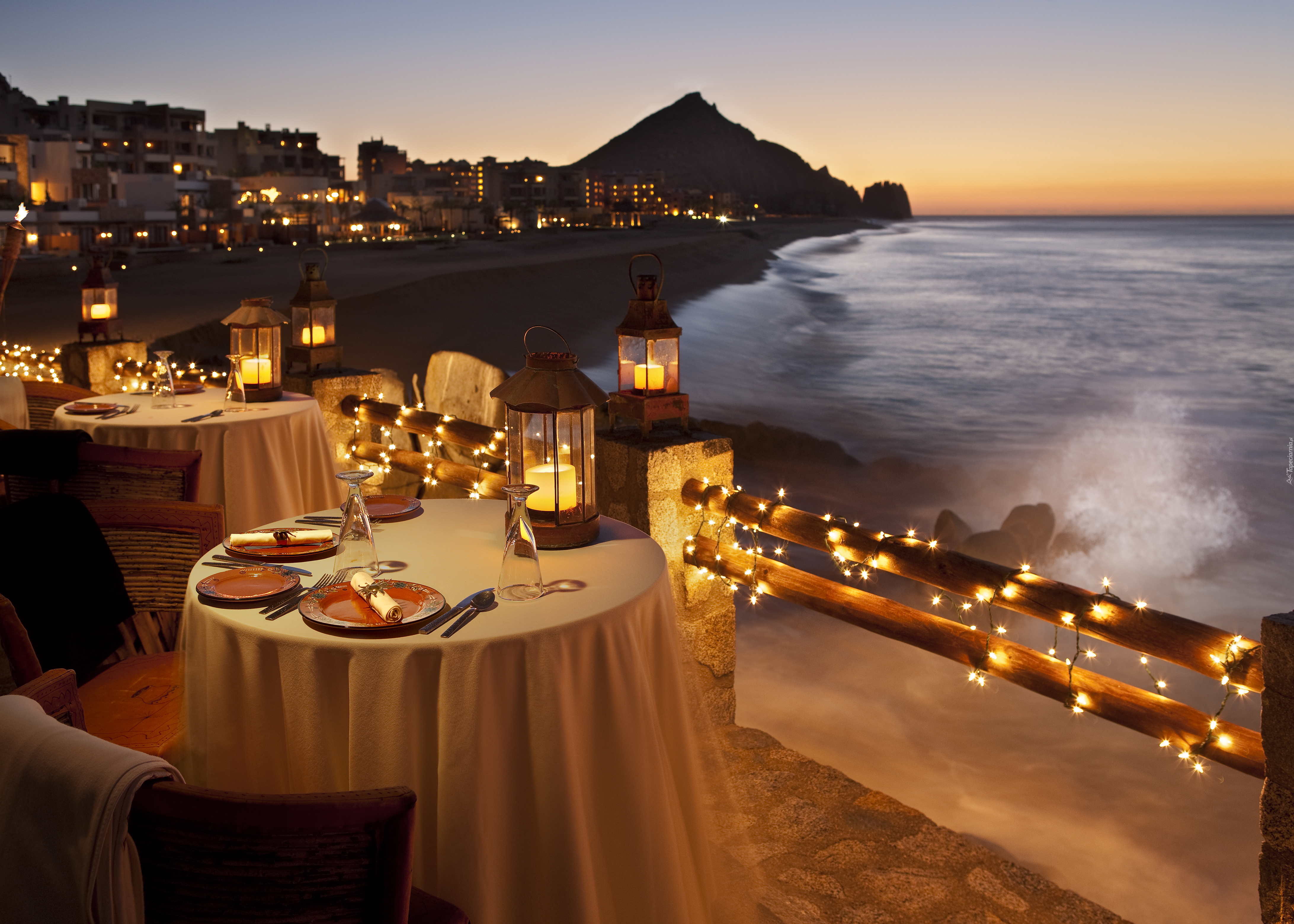 Edytor tapety: Restauracja, Miasto, Morze