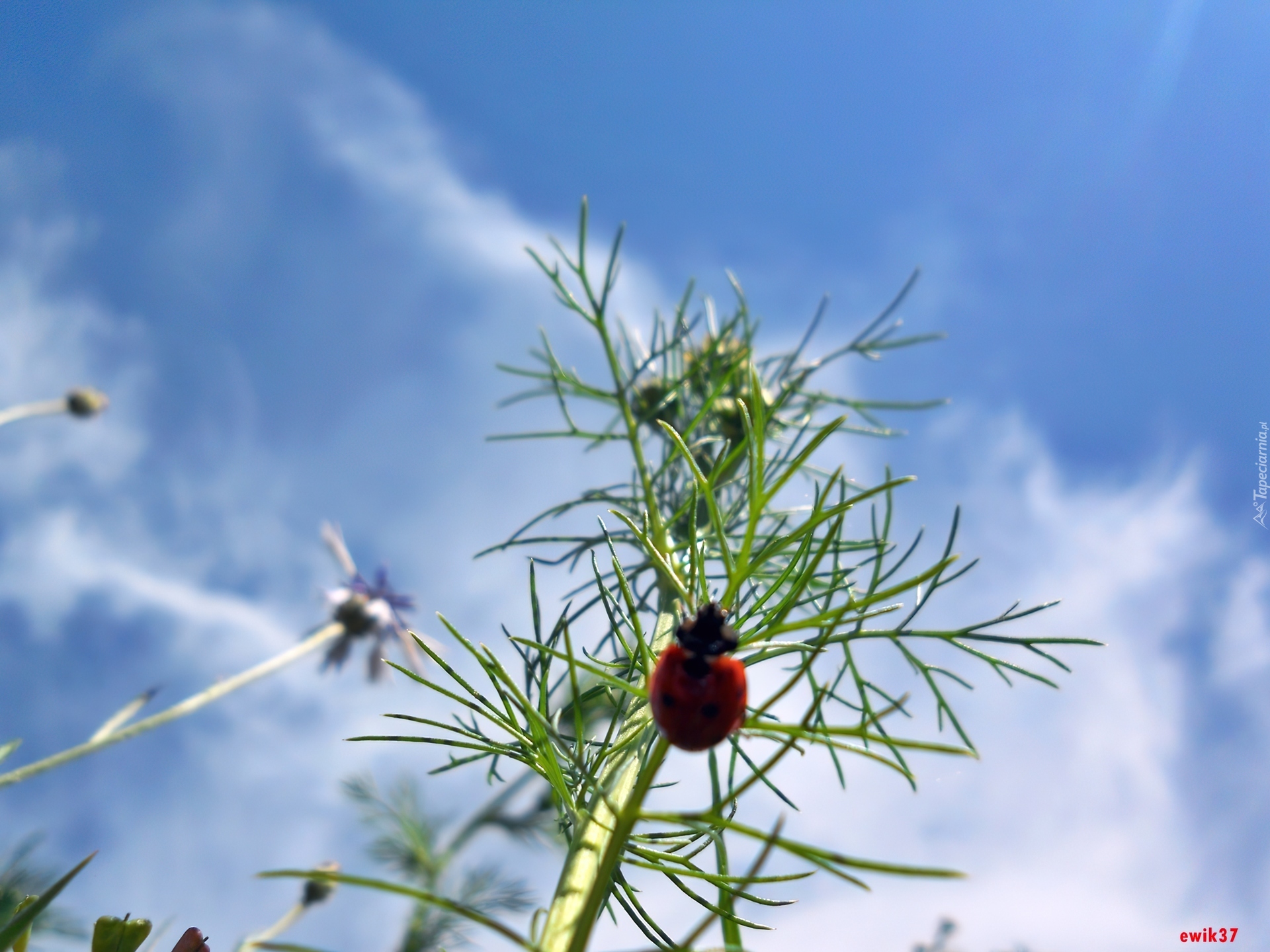 Edytor tapety: Rumianek, Niebo, Biedronka