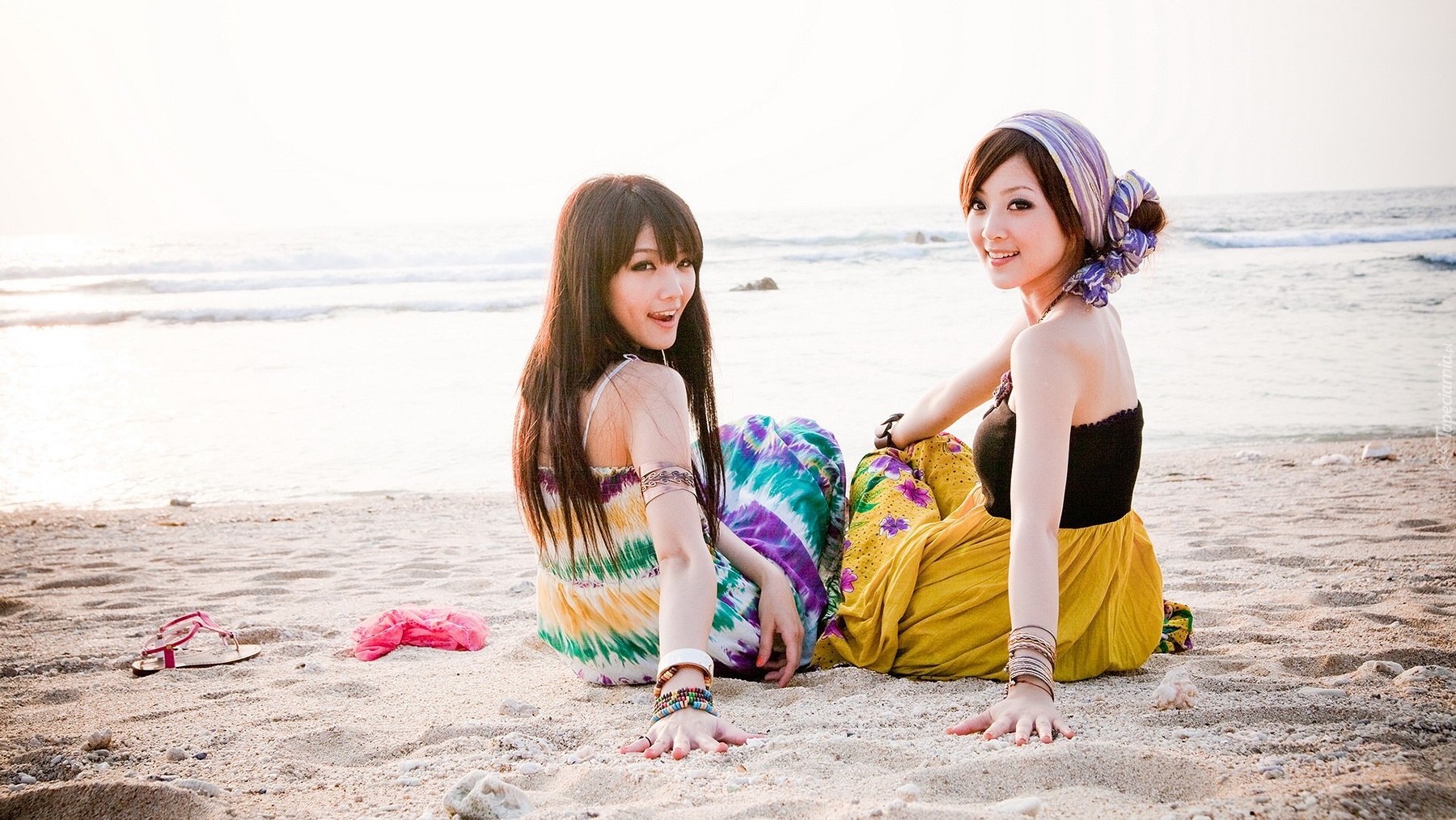 Edytor tapety: Uśmiechnięte, Dziewczyny, Plaża