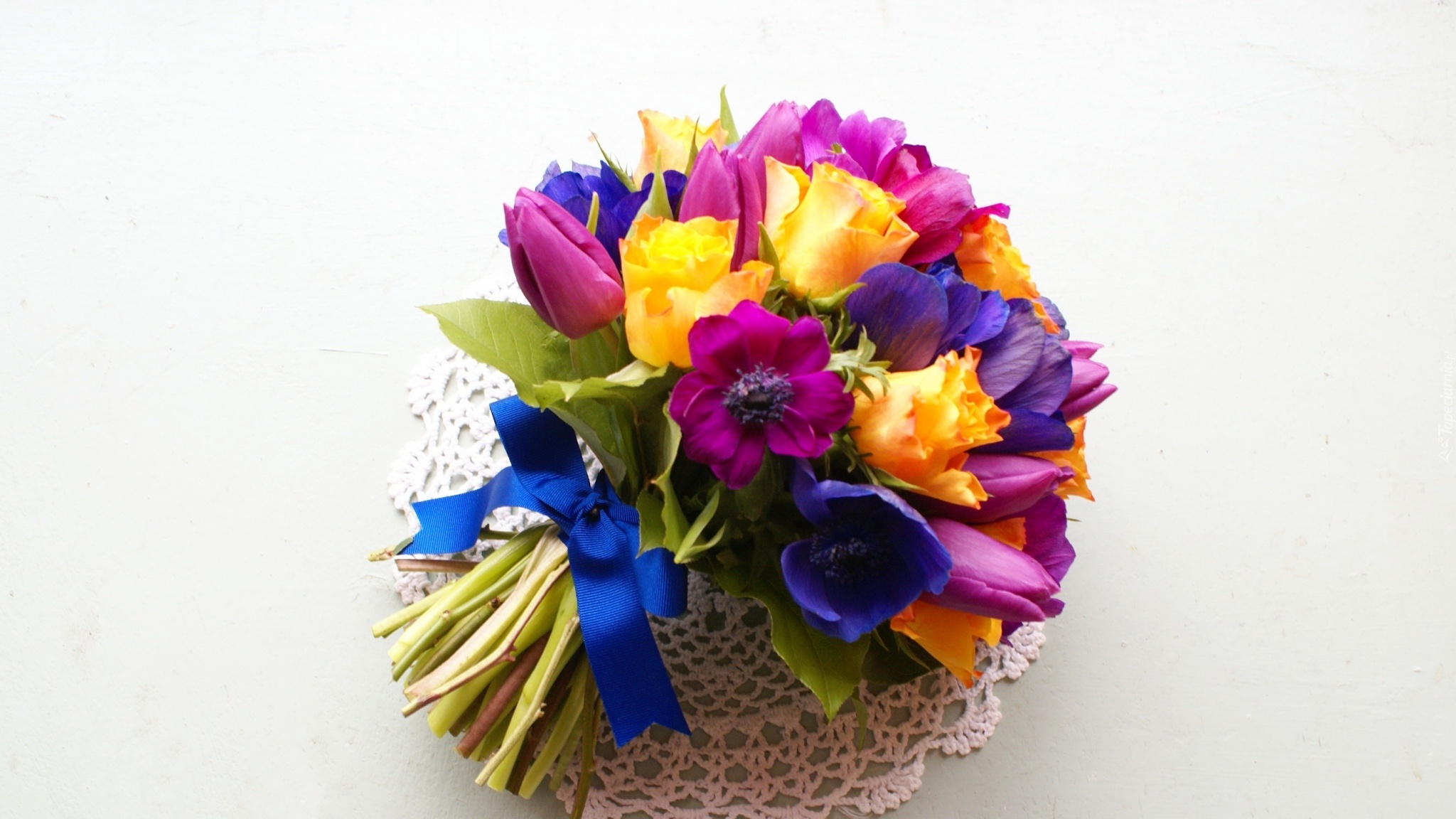 Edytor tapety: Bukiet, Kwiatów, Maki, Tulipany, Georginie, Róże, Serwetka