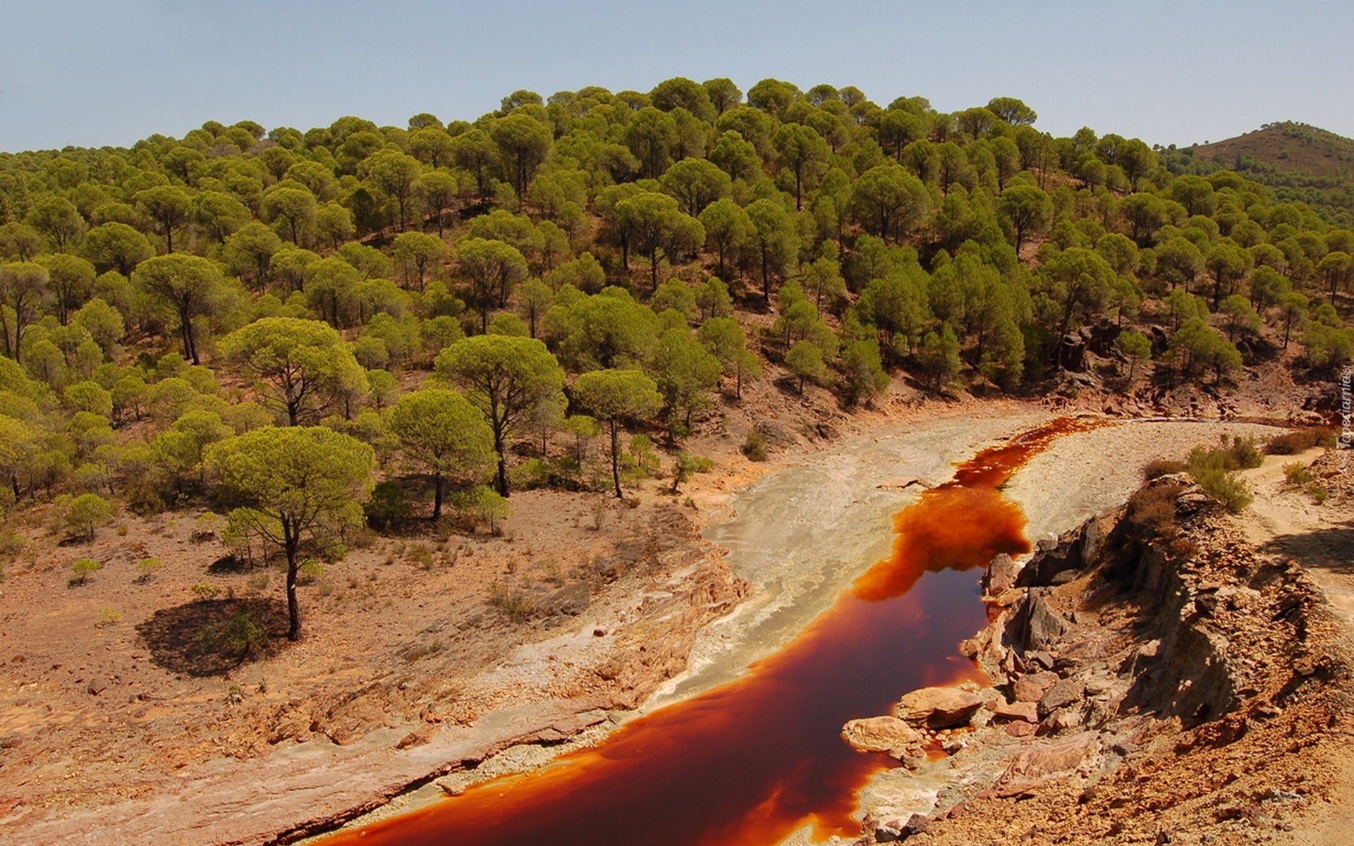 Edytor tapety: Hiszpania, Rzeka, Tinto, Las, Drzewa