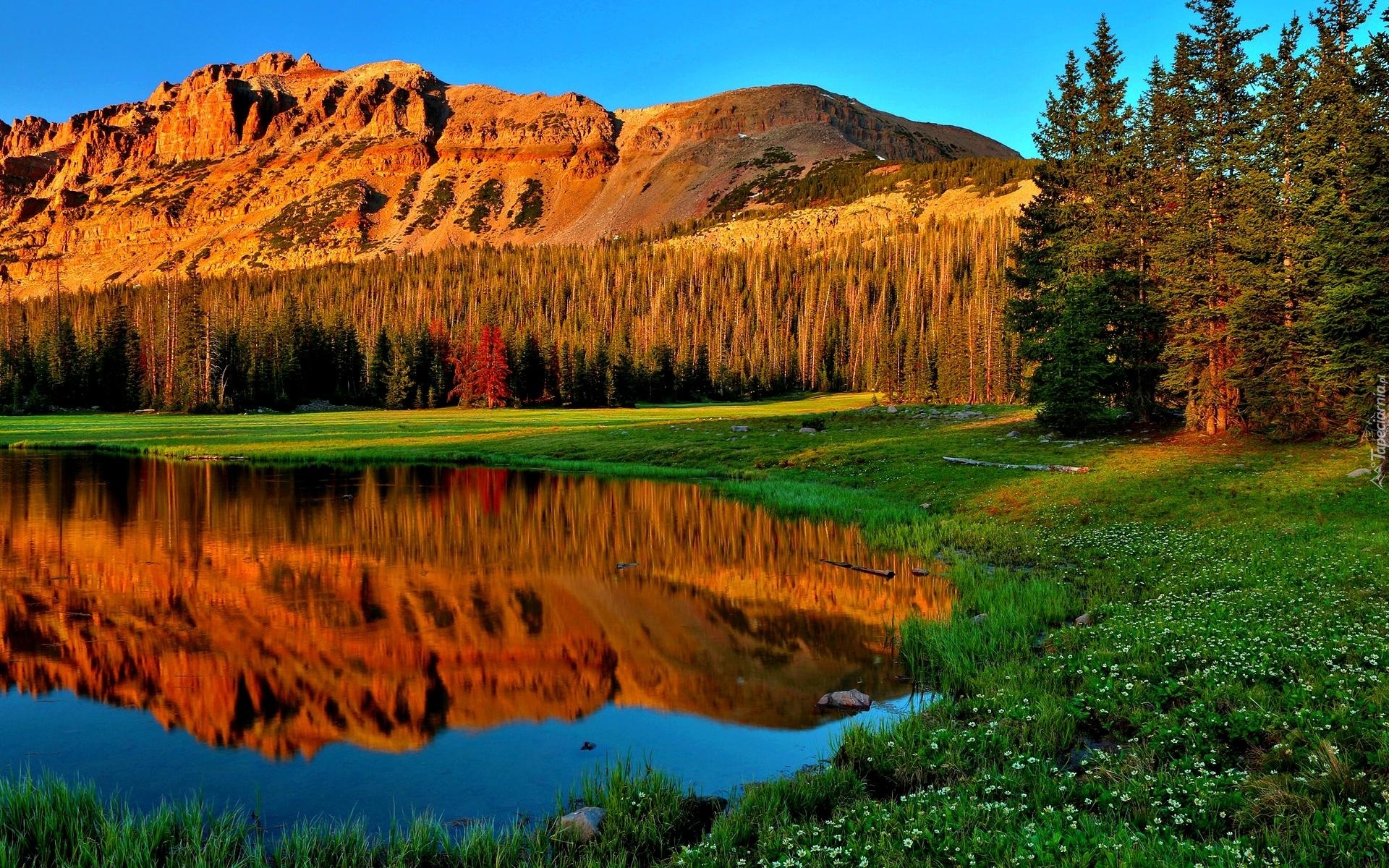 Edytor tapety: Staw, Łąka, Las, Góry