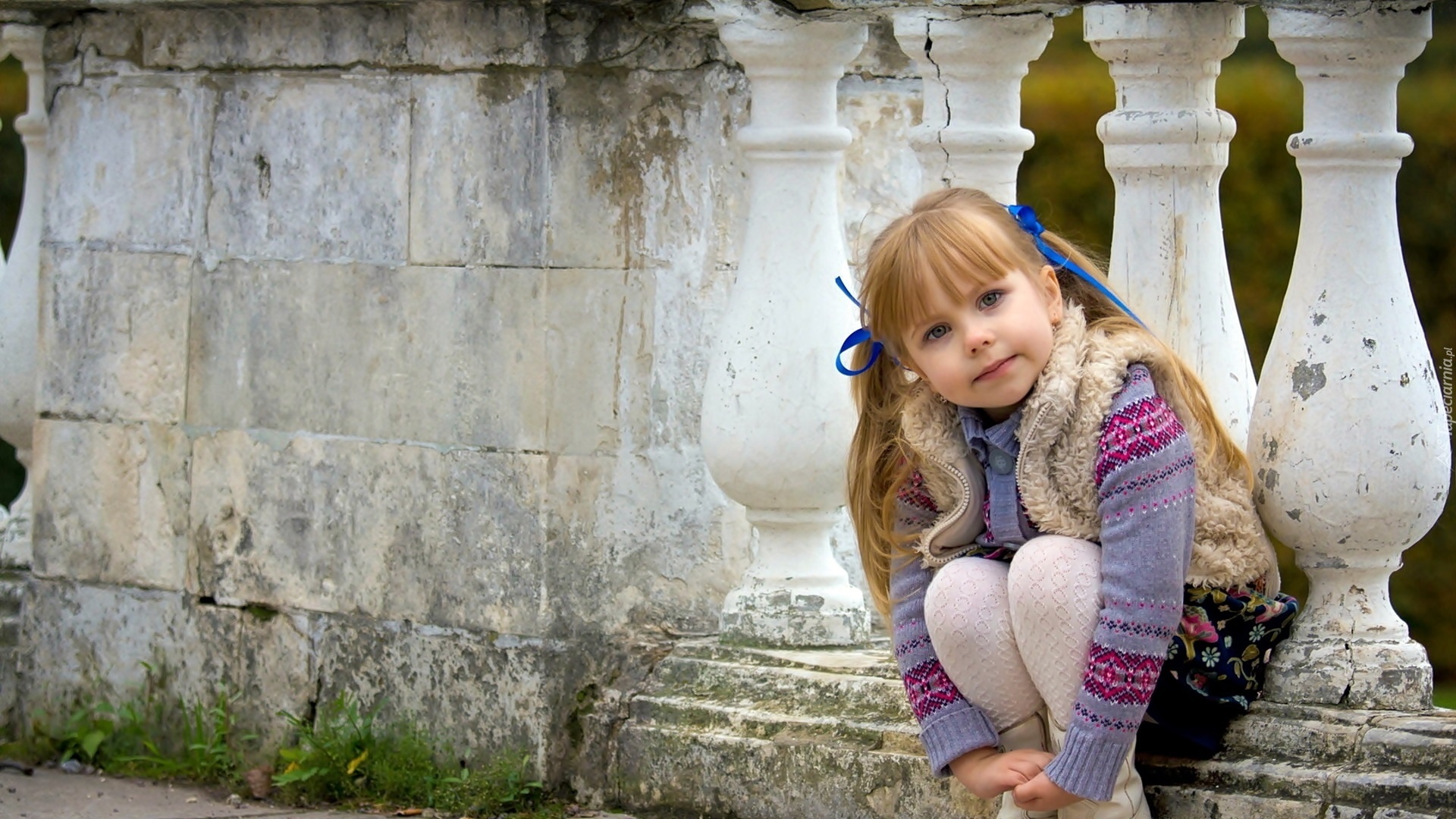 Edytor tapety: Siedząca, Dziewczynka, Fragment, Budynku