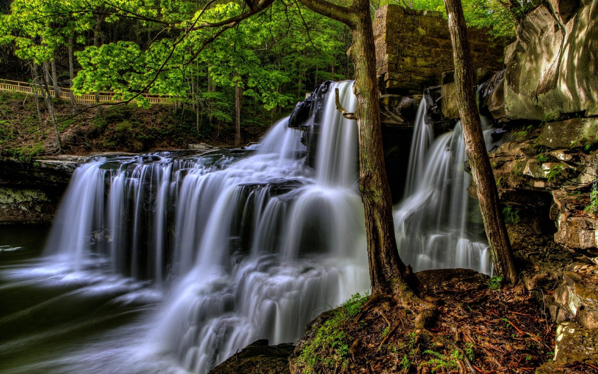 Edytor tapety: Las, Wodospad, Drzewa