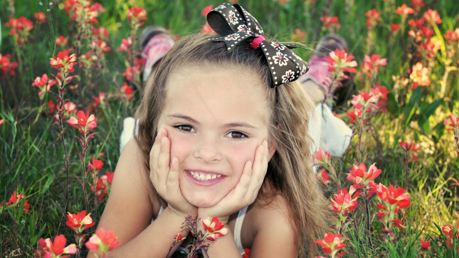 Edytor tapety: Dziewczynka, Z Kokardą, Lato, Łąka, Kwiaty
