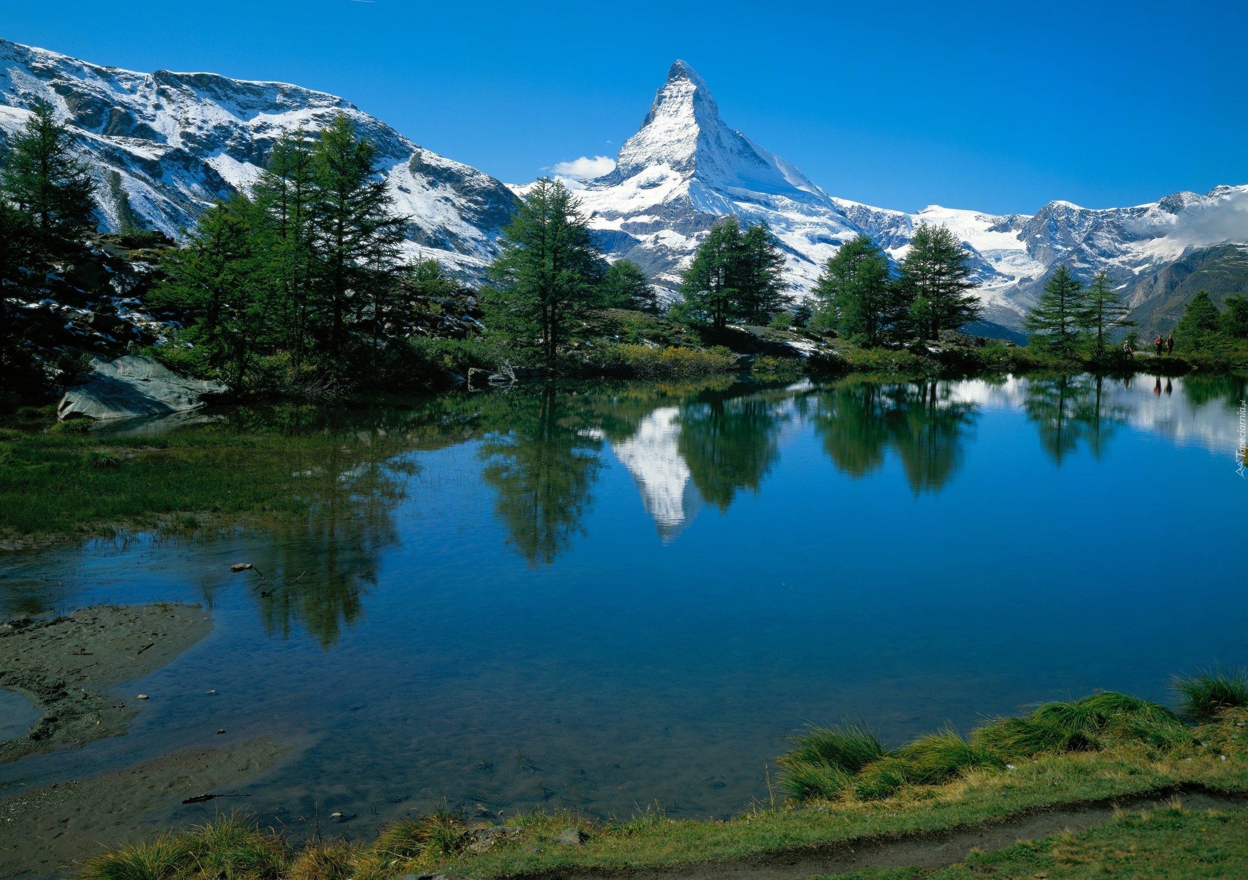 Edytor tapety: Góry, Alpy, Szczyt Matterhorn, Jezioro, Drzewa