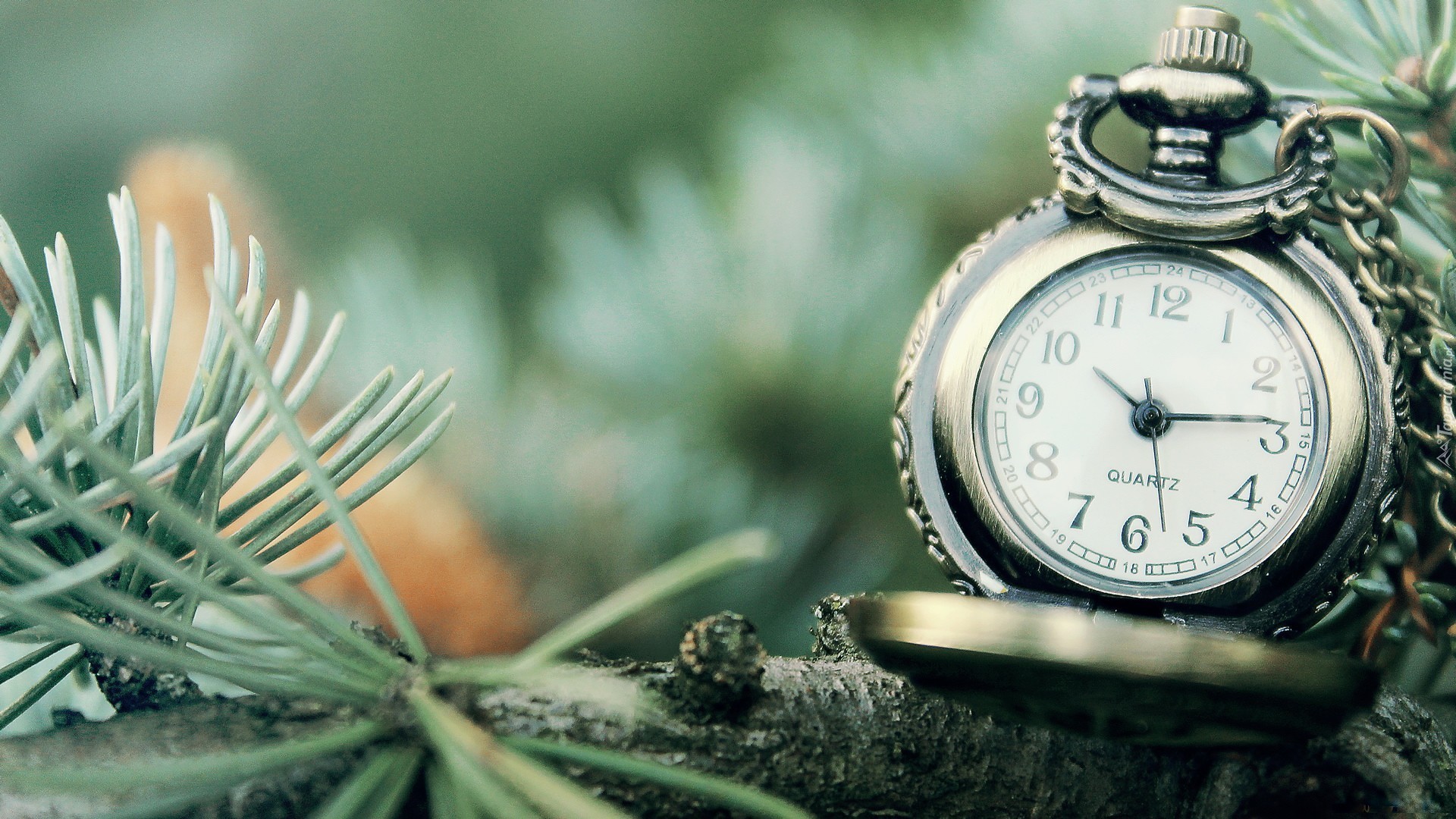 Edytor tapety: Zegarek, Gałązka, Świerku
