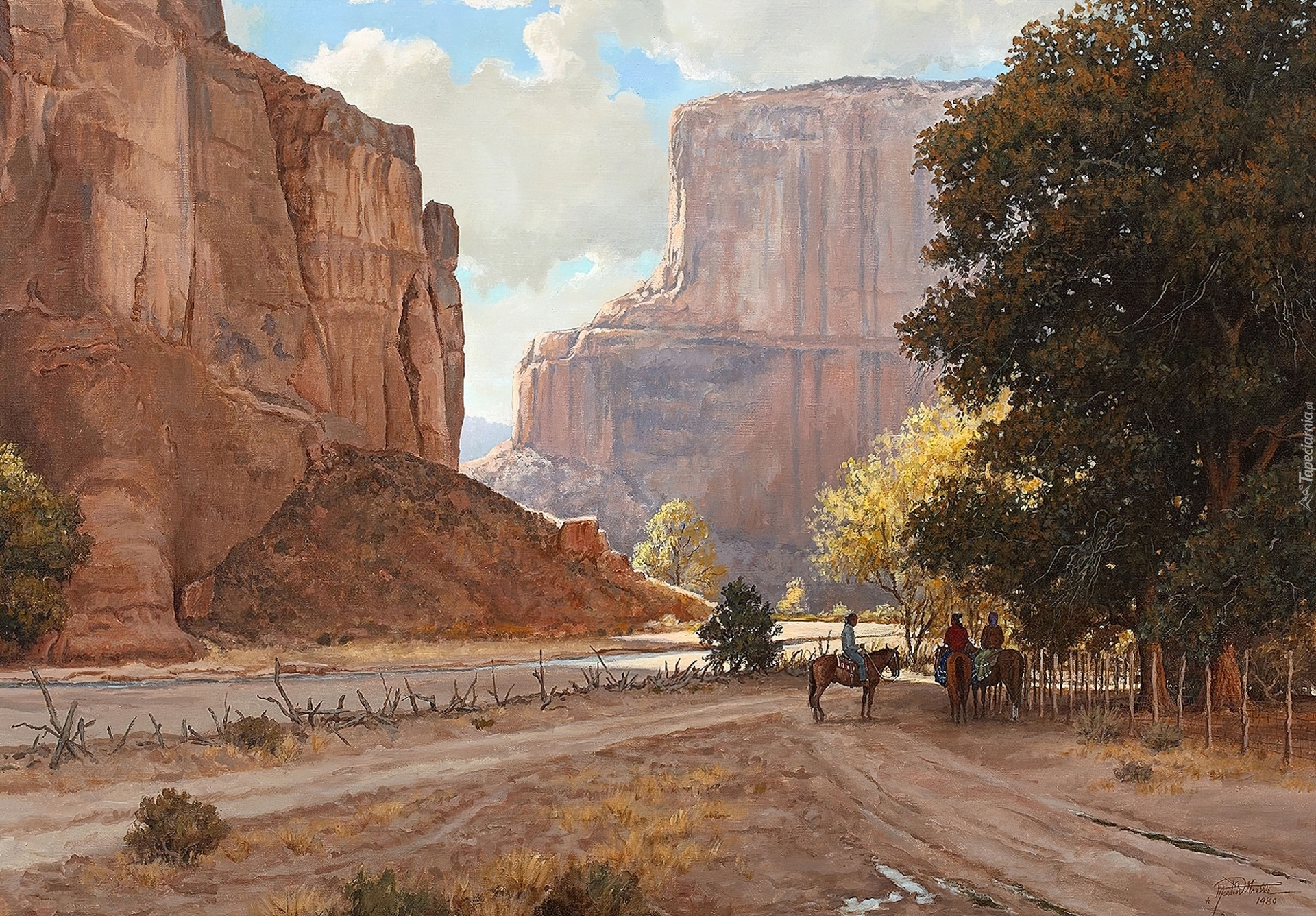 Edytor tapety: Kanion, Konie, Jeźdźcy, Obraz, Malarstwo
