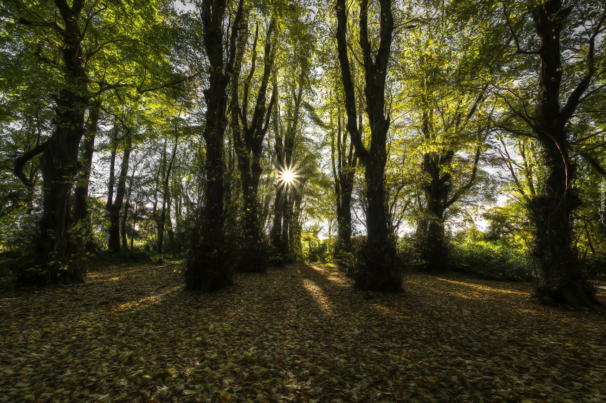 Edytor tapety: Las, Promienie, Słońca