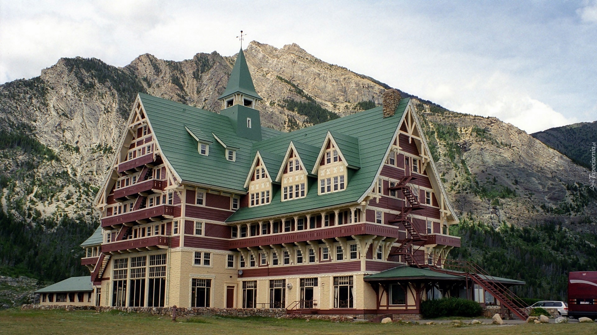Edytor tapety: Góry, Hotel, Drzewa, Trawnik