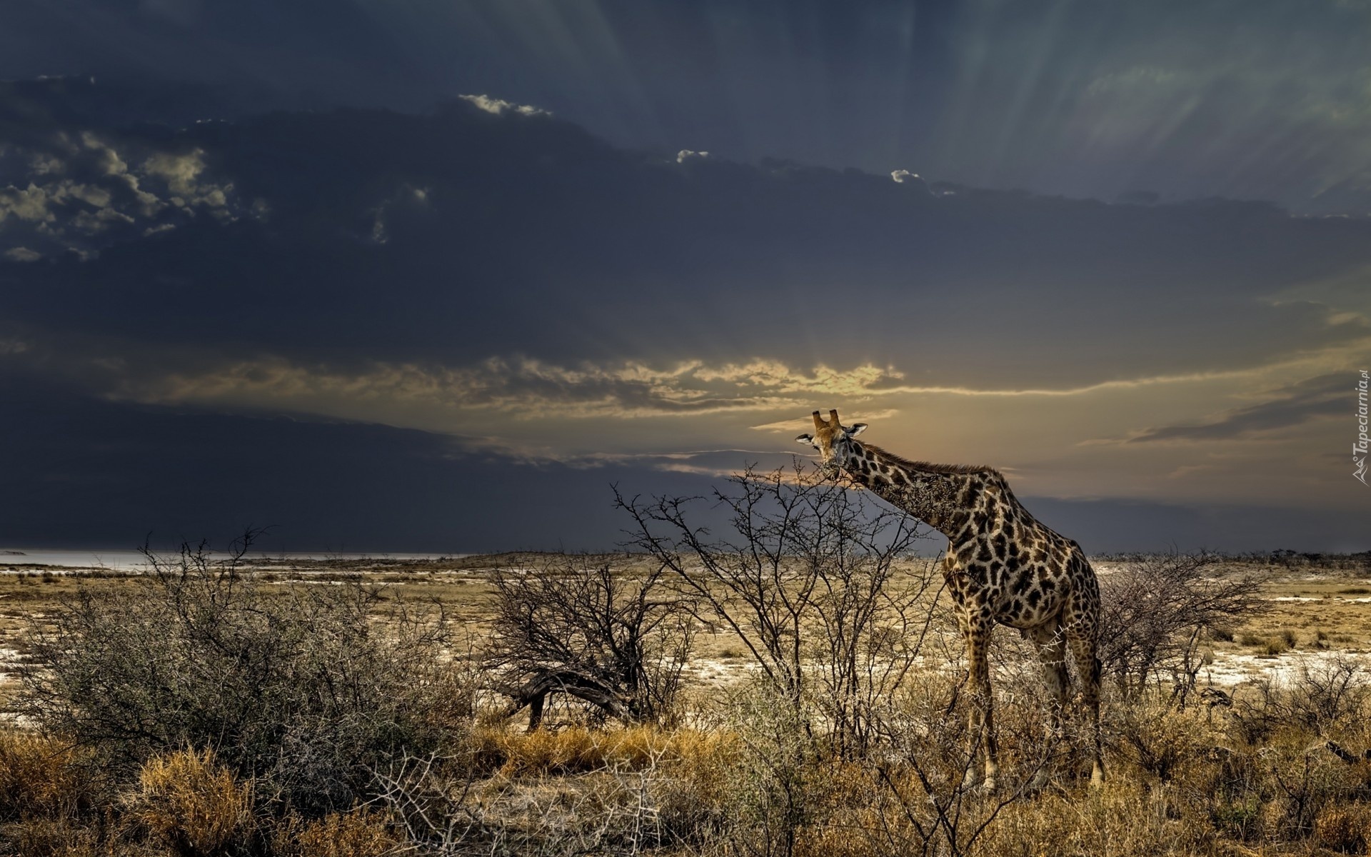 Edytor tapety: Żyrafa, Krzewy, Chmury, Sawanna, Afryka