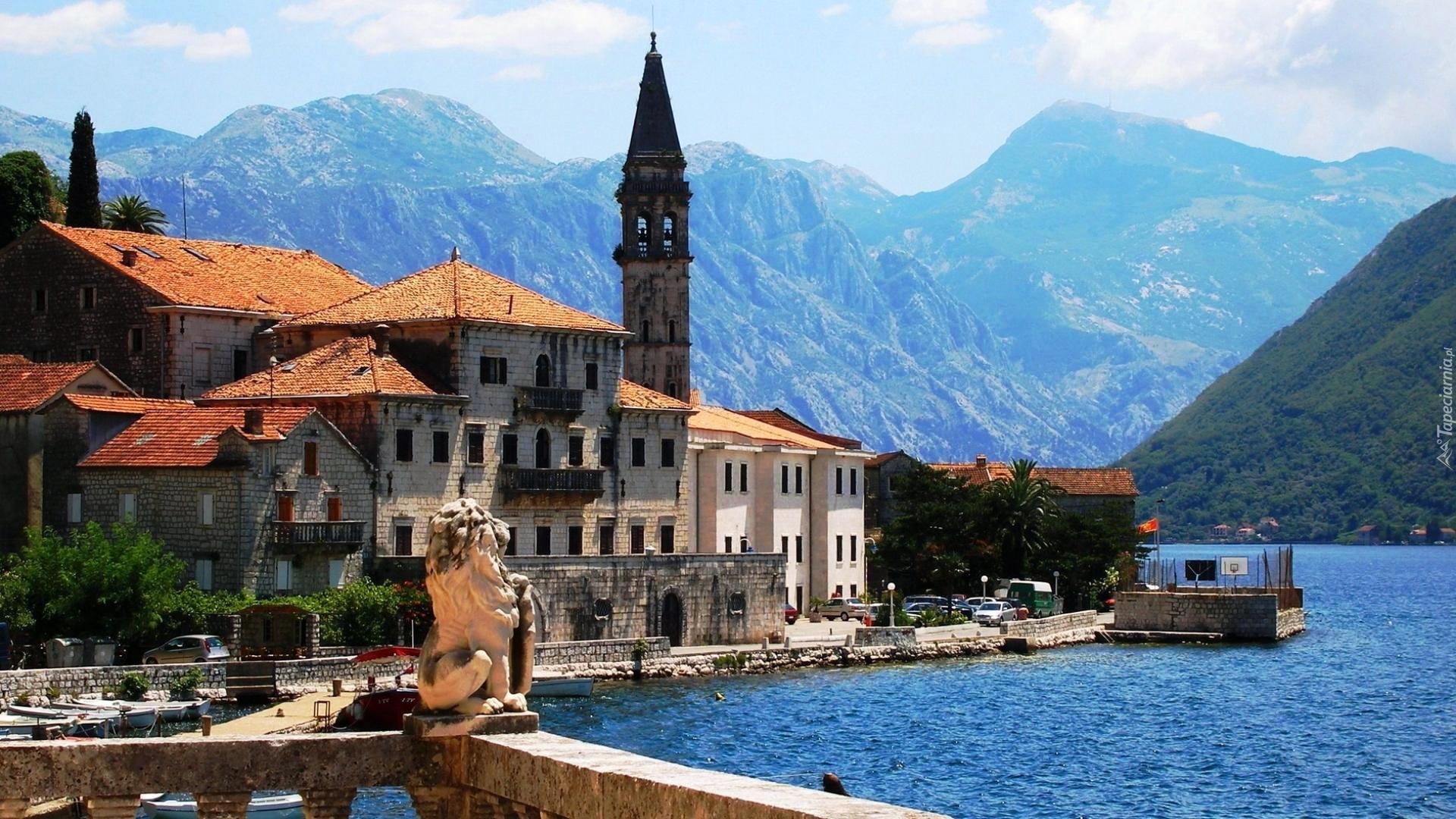 Edytor tapety: Miasteczko, Góry, Jezioro