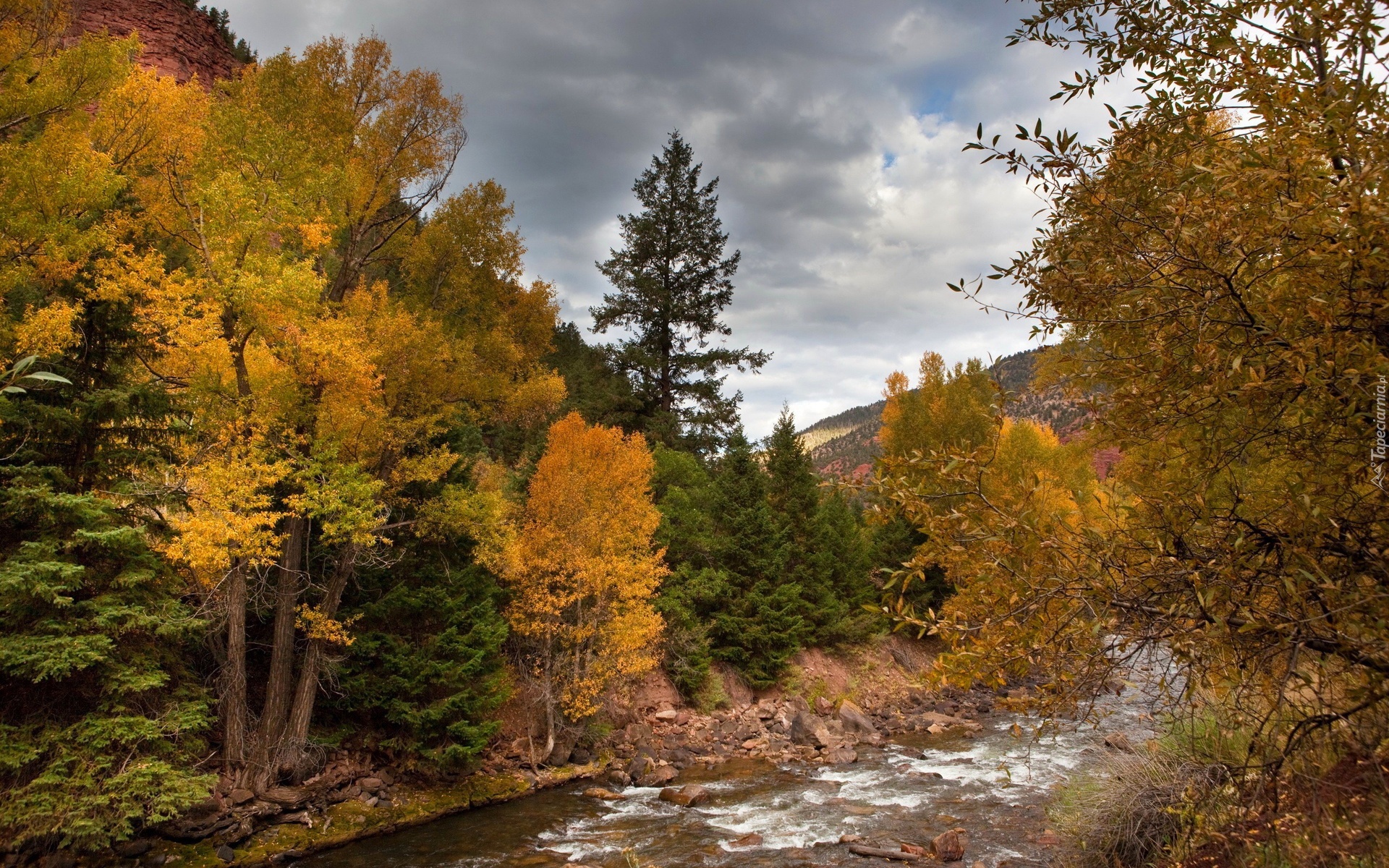 Edytor tapety: Rzeka, Góry, Lasy, Jesień