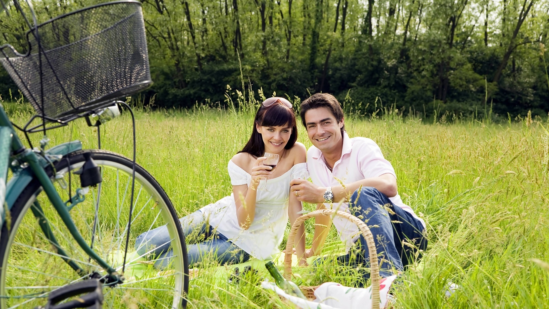 Edytor tapety: Kobieta, Mężczyzna, Piknik, Łąka, Rower