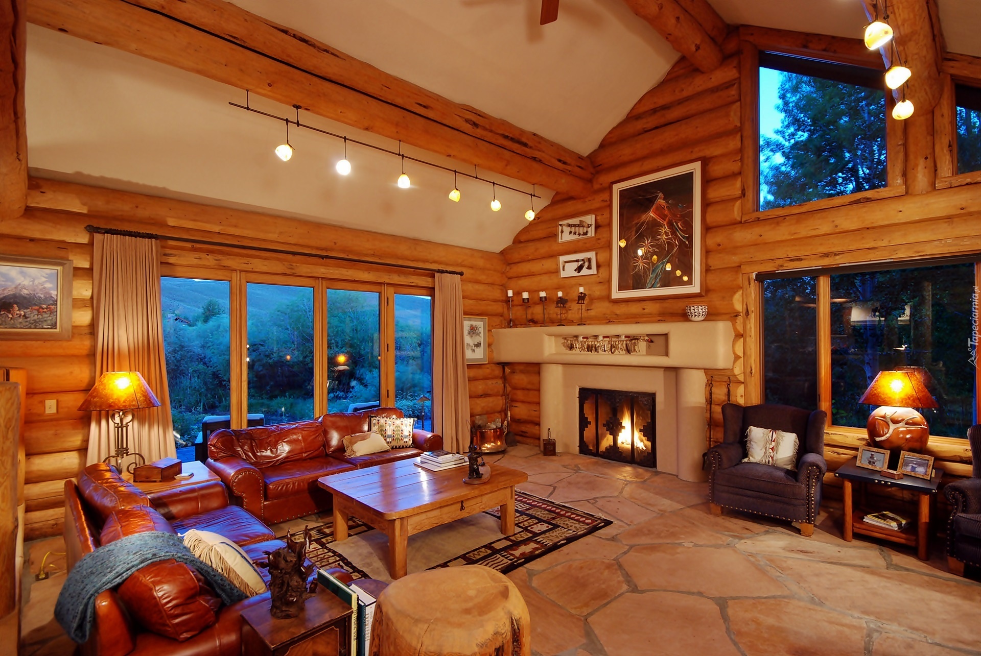 Edytor tapety: Salon, Kominek, Okna, Widok