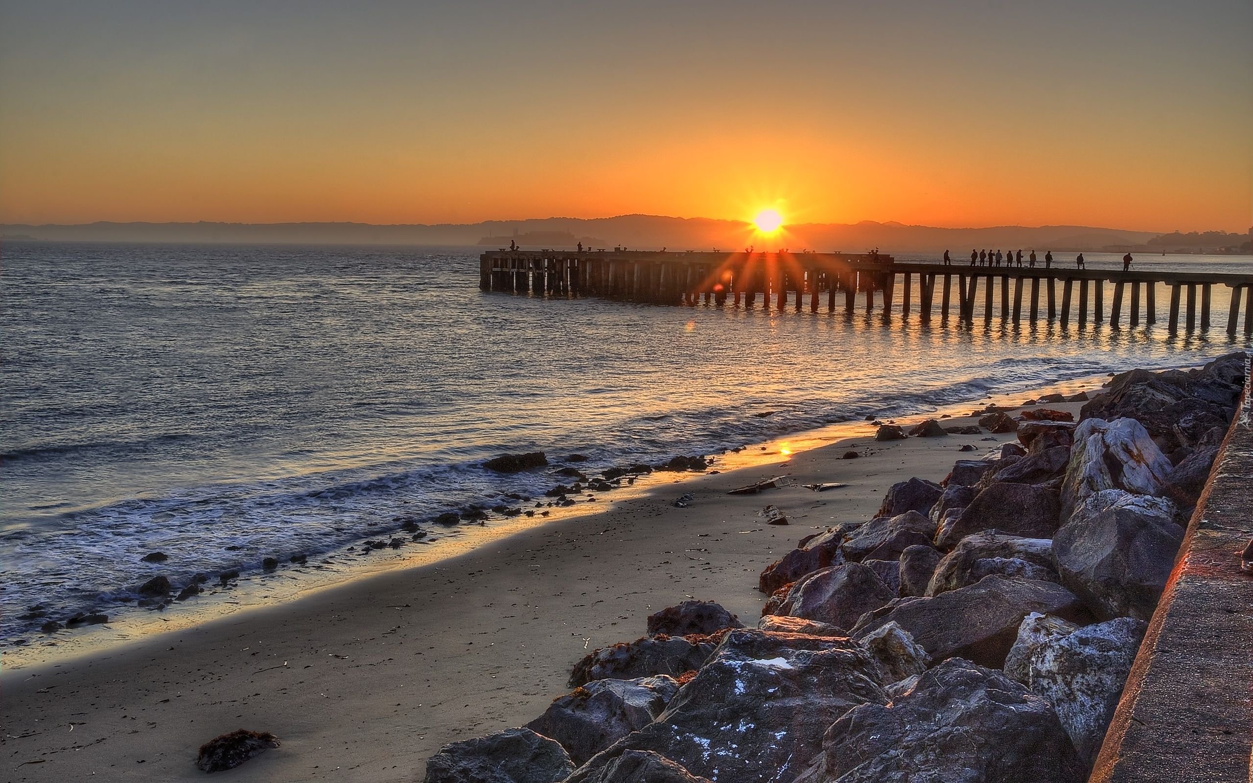 Edytor tapety: Molo, Morze, Głazy, Promienie, Słońca