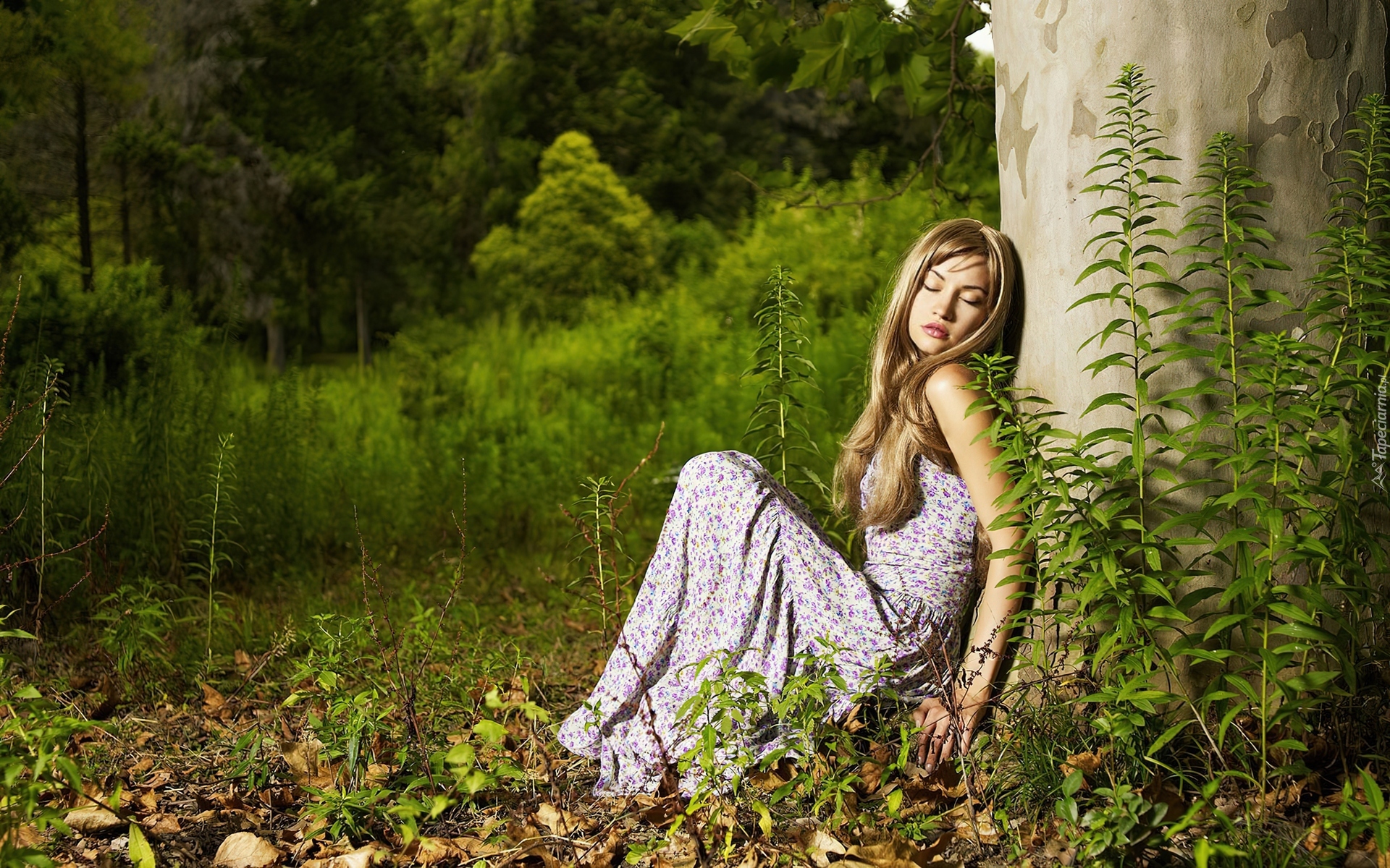 Edytor tapety: Las, Drzewo, Dziewczyna