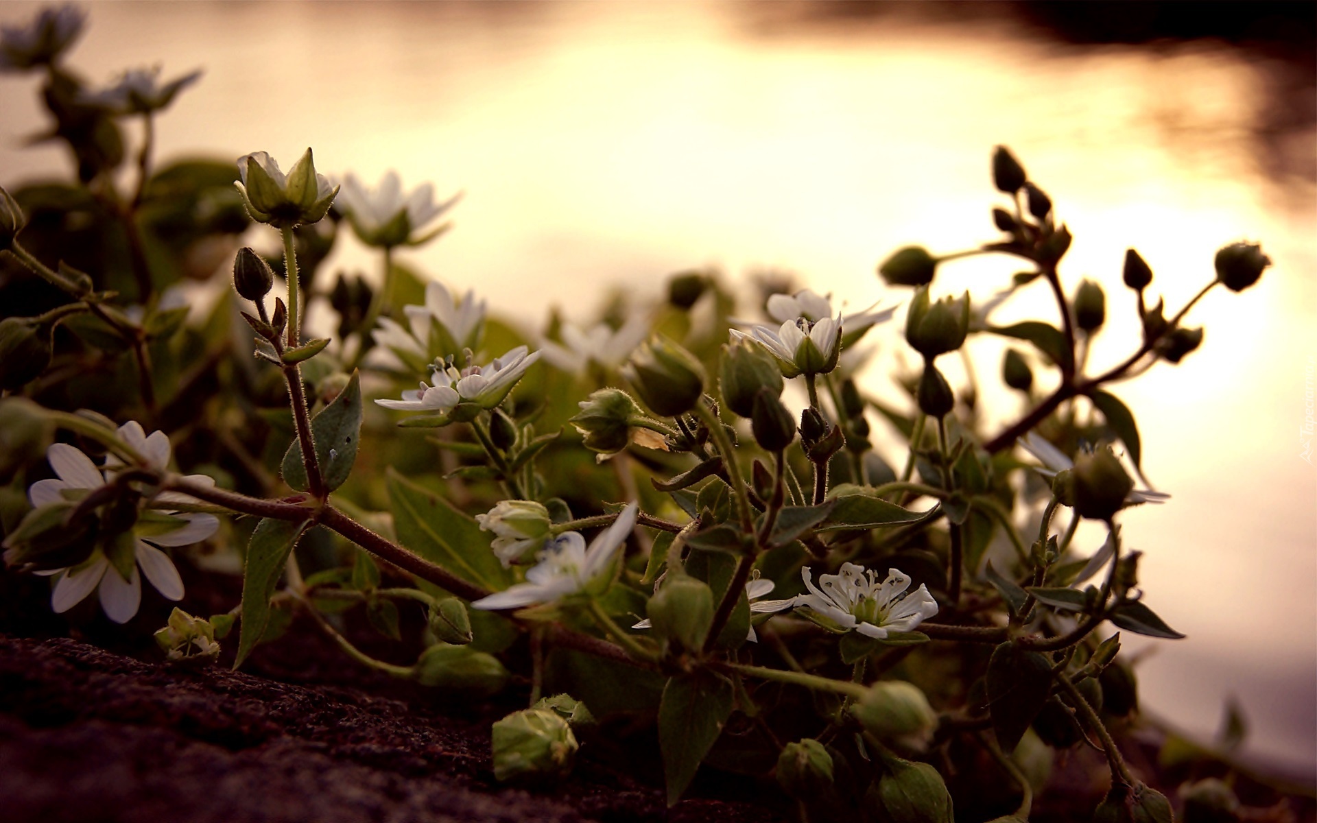 Edytor tapety: Białe, Kwiatki, Pąki, Makro, Zachód Słońca