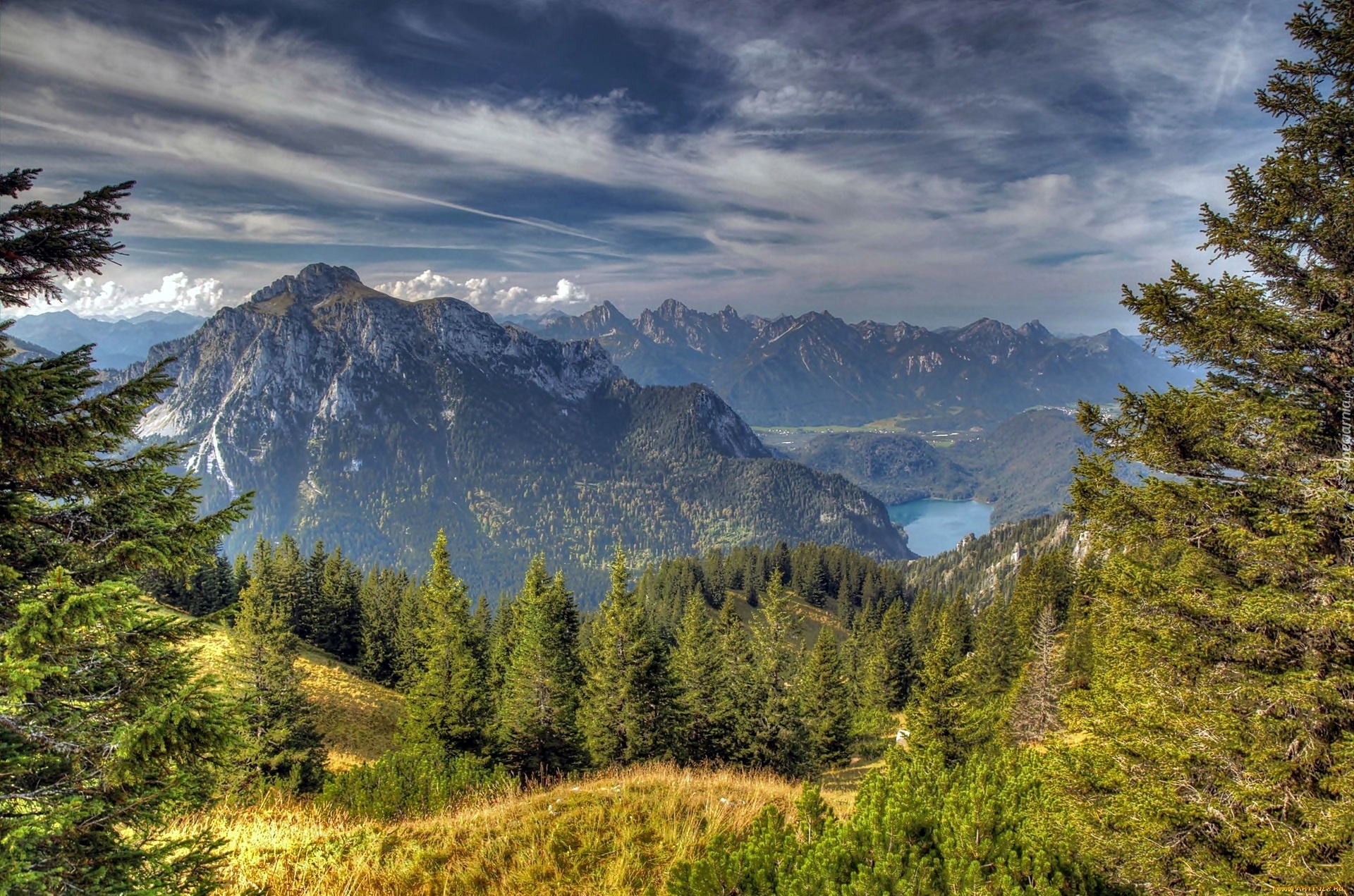 Edytor tapety: Alpy, Jezioro, Las, Chmury