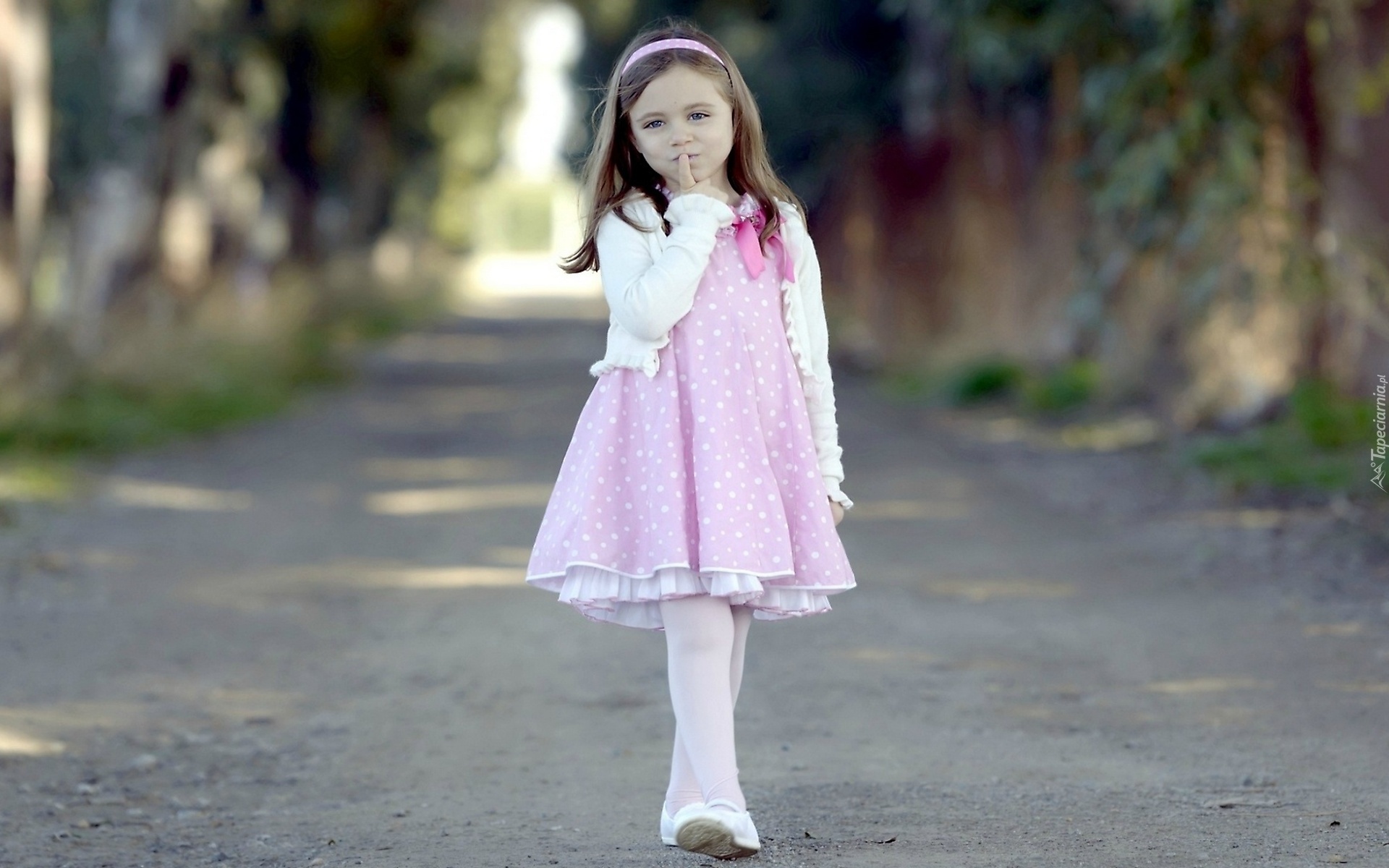Edytor tapety: Droga, Dziewczynka, Różowa, Sukienka, Opaska, Spacer