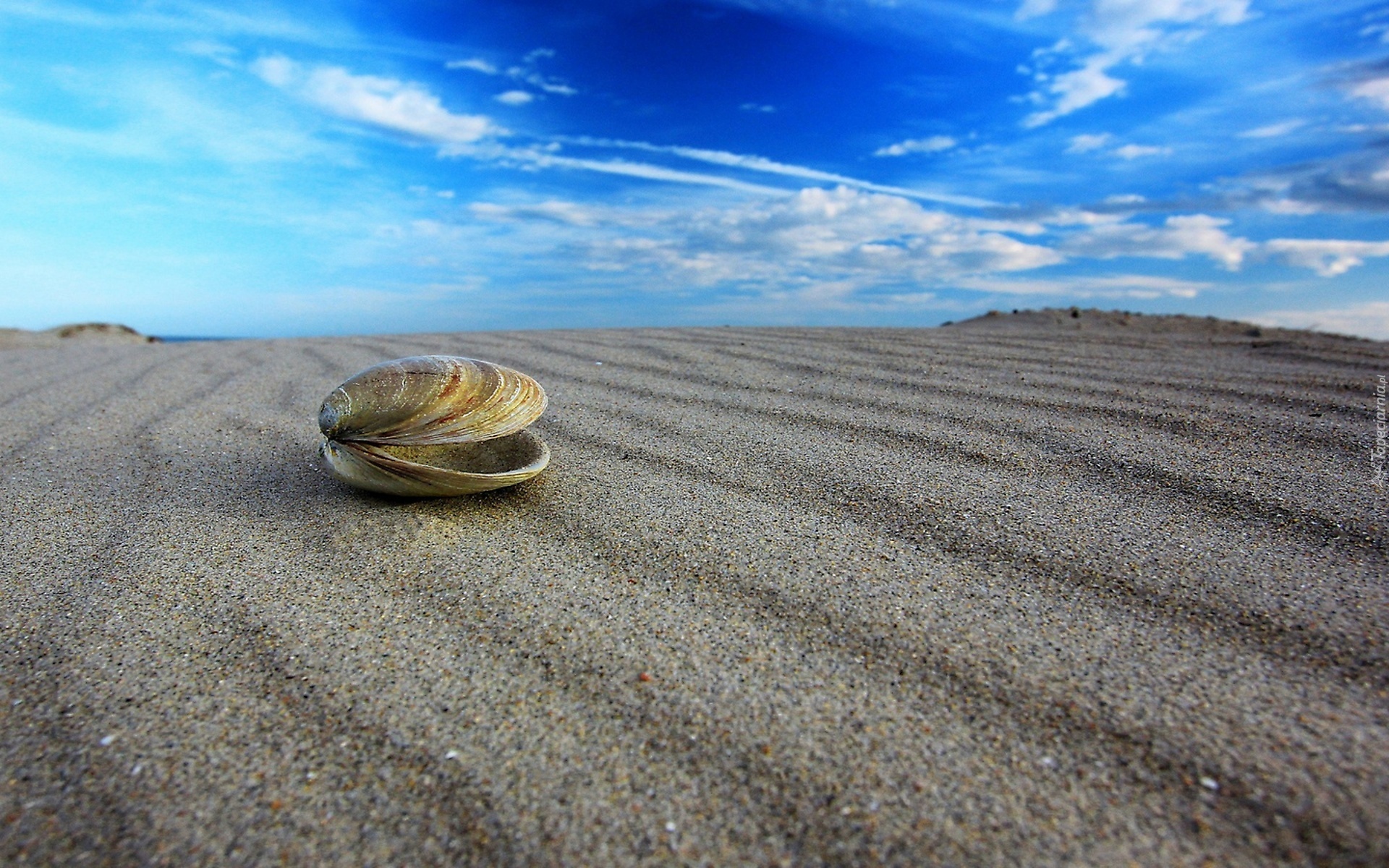 Edytor tapety: Muszelka, Piasek, Niebo