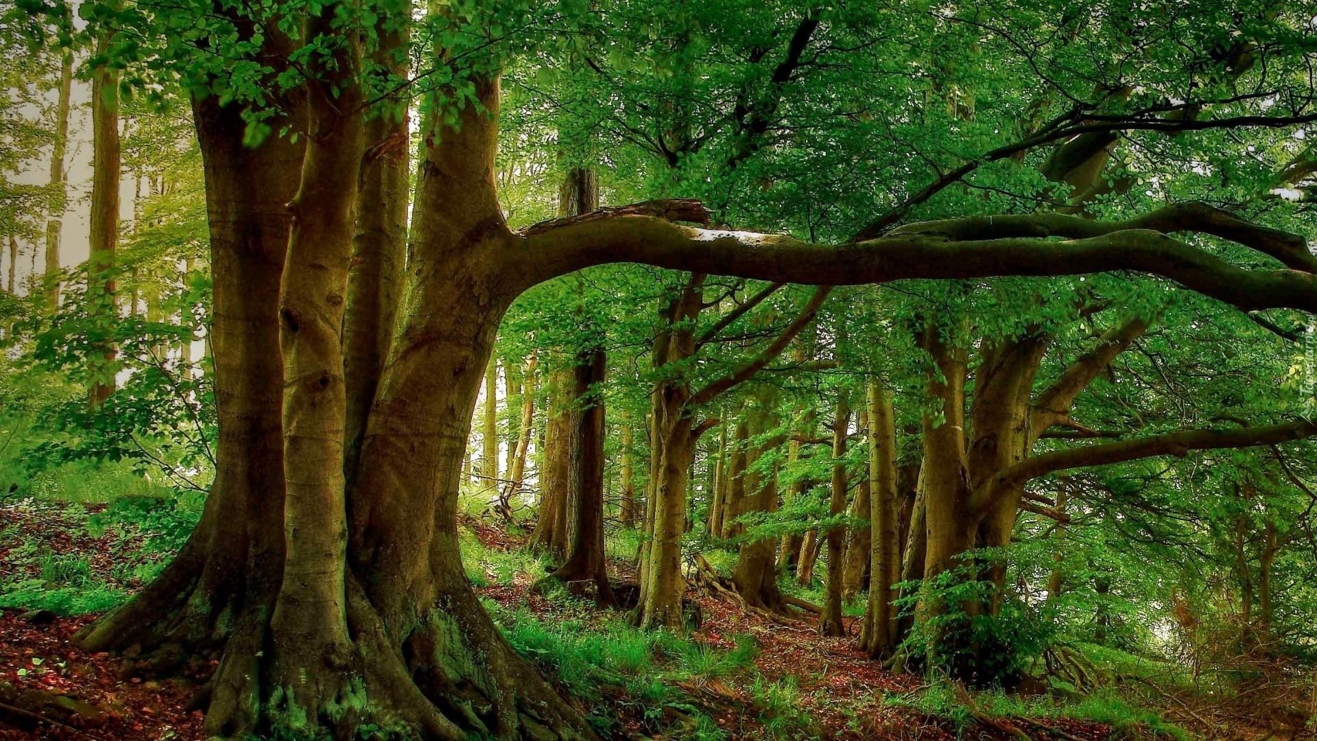 Edytor tapety: Las, Drzewa, Ścieżka, Przebijające, Światło, Wiosna