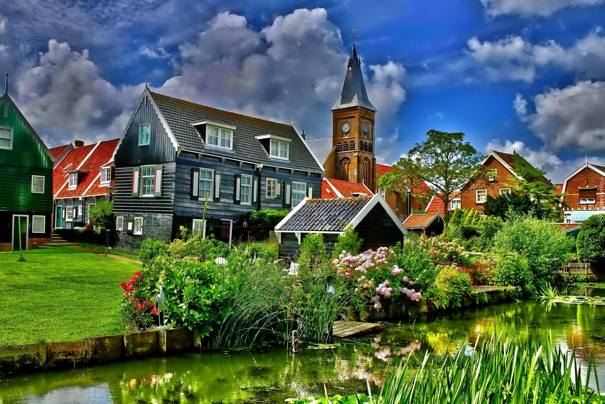 Edytor tapety: Domy, Staw, Rośliny