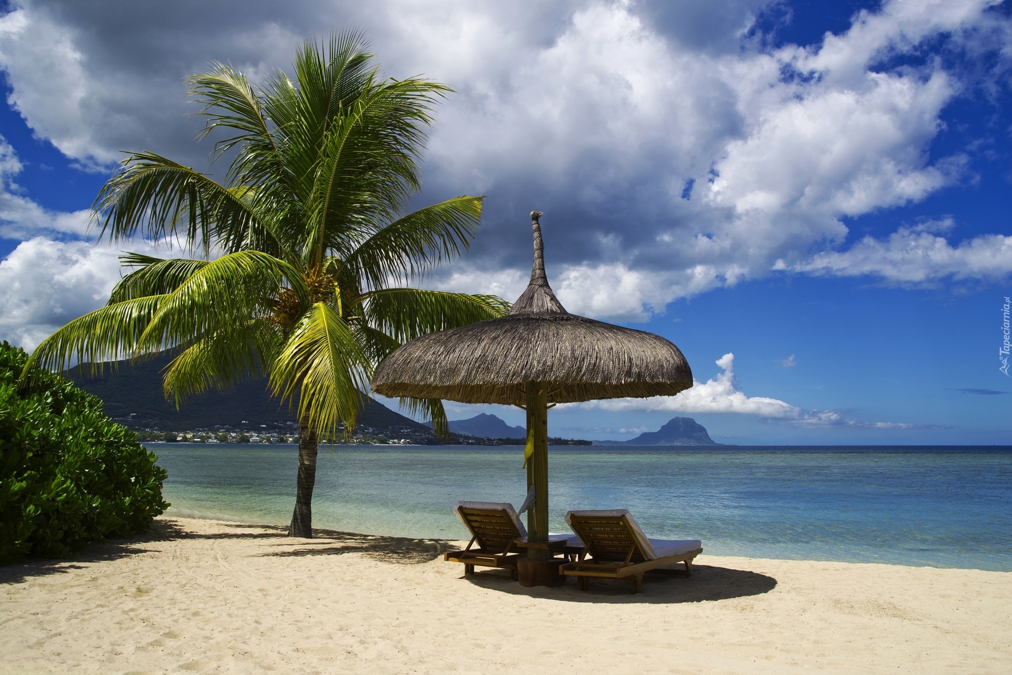 Edytor tapety: Chmury, Ocean, Plaża, Parasol, Tropiki, Wakacje